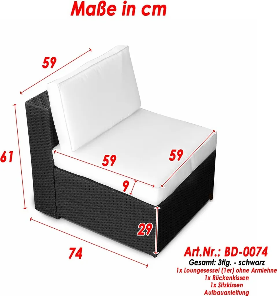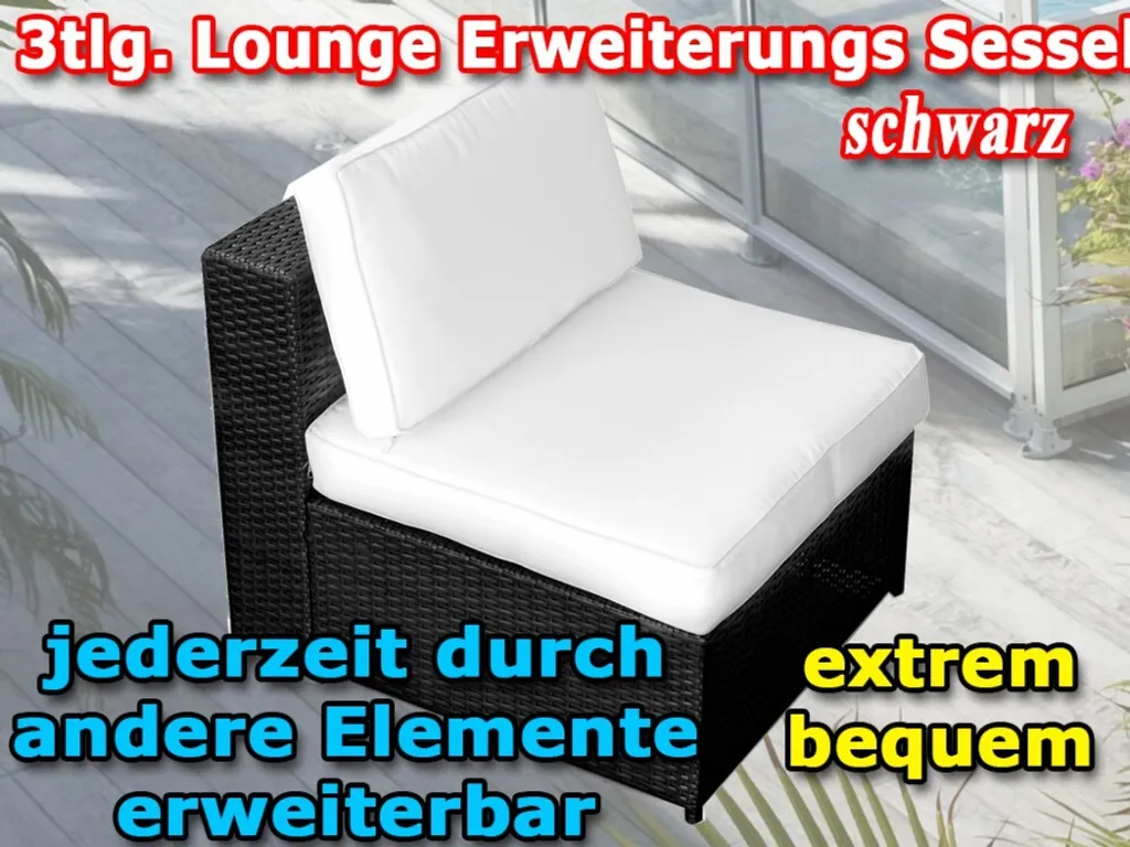 3tlg. (1er) Gartenmöbel Polyrattan Loungesssel Ohne Armlehne – Anthrazit