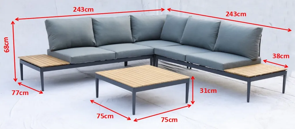 Acamp® PAROS Lounge Set 4-teilig Gartenlounge Sitzecke Lounge 56270, Gestell: Aluminum Pulverbeschichtet, Seitenteile: Akazienholz
