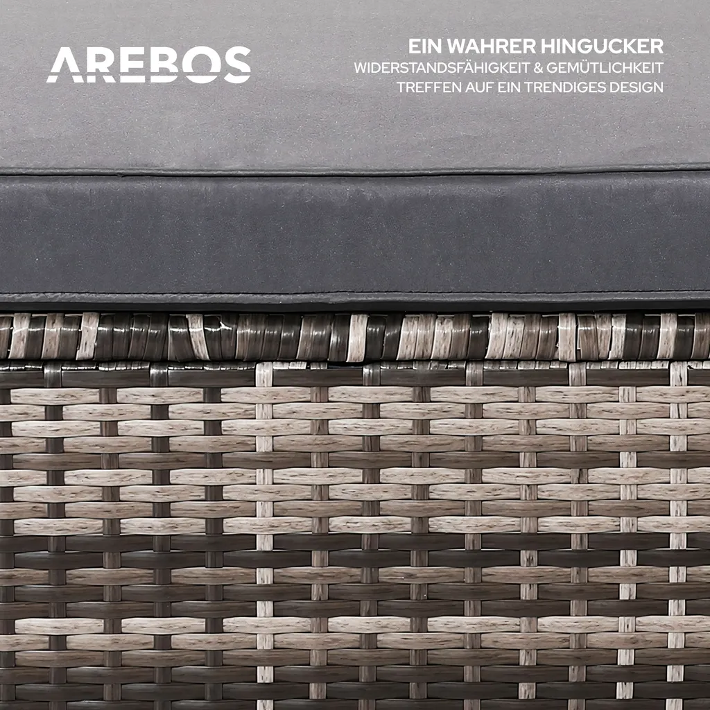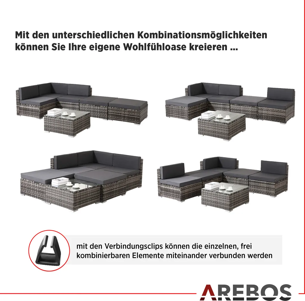 AREBOS Polyrattan Gartenmöbel Gartenlounge, Garnitur Set Sitzgruppe Grau, Aluminium Gestell, Tisch Mit Glasplatte, Inkl. Sitzkissen, 4 Personen