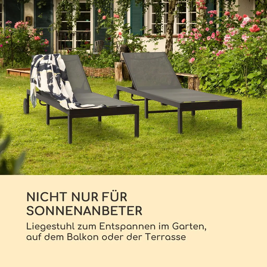Blumfeldt Sonnenliege Klappbar, Polyester-Sonnenliegen Mit Aluminium Rahmen, Sonnenliege Mit Rollen, Schnelltrocknende Gartenliege Wetterfest, Liegestuhl Verstell- & Klappbar, Klappbare Gartenliege