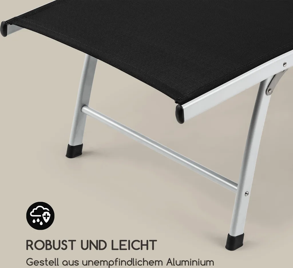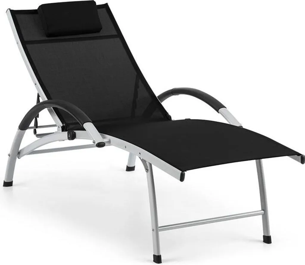 Blumfeldt Sun Valley – Sonnenliege Mit Kopfkissen, Zusammenklappbar, Gestell Aus Aluminium, 4-fach Verstellbare Rückenlehne, Sun Comfort, Material: 70% PVC Und 30% Polyester Comfort Mesh, Schwarz