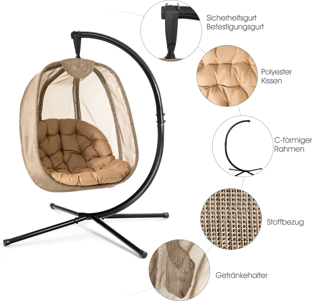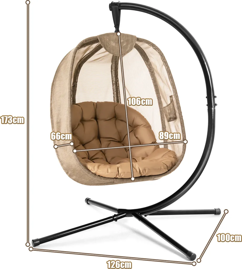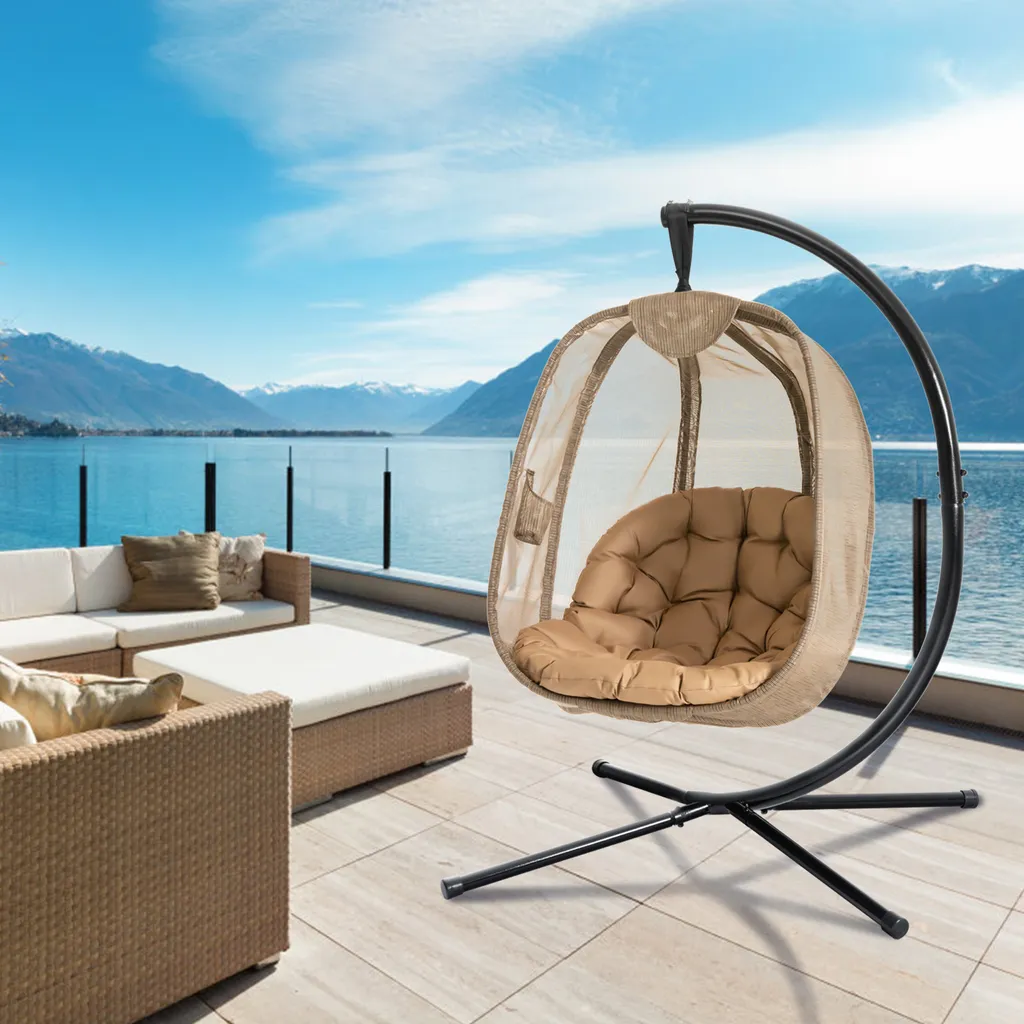 COSTWAY Hängesessel Mit Gestell & Sitzkissen, Hängestuhlgestell Mit Hängestuhl, Hängekorb Gestell Aus Stahl Bis 110kg Belastbar, Hängesesselgestell Für Terrasse Balkon, X-förmige Basis