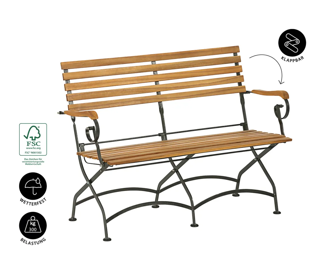Dehner Klappbank Tegernsee, 2-Sitzer, Ca. 124 X 88 X 57 Cm, FSC Akazienholz/Stahl, Natur