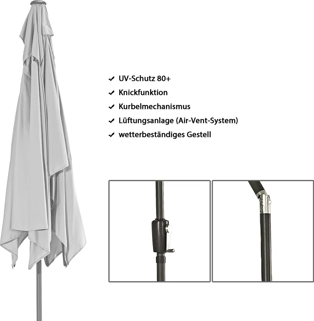 Linder Exclusiv Knick Sonnenschirm, Gartenschirm Ø 250 Cm,mit Kurbelmechanismus,Kalk
