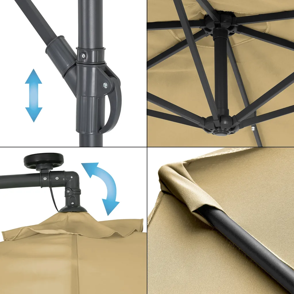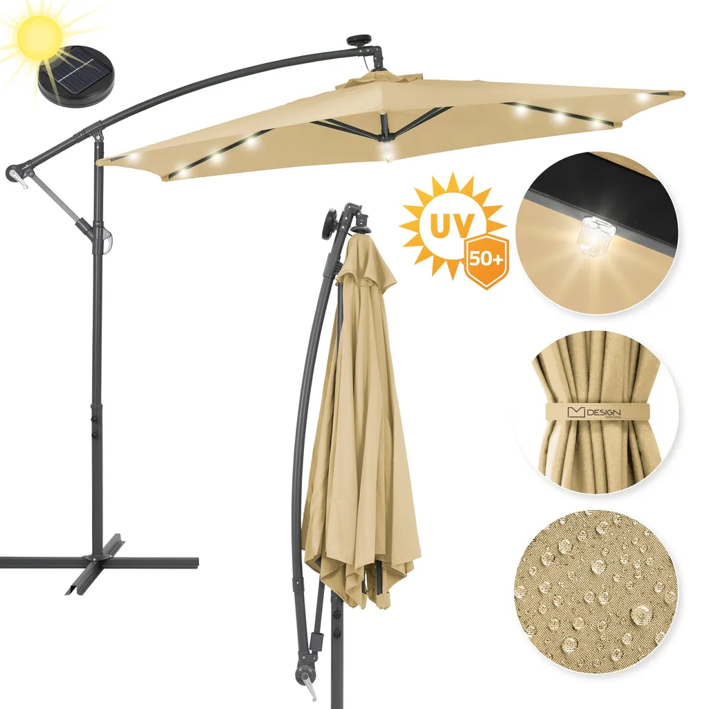 ECD Germany Ampelschirm Mit Kurbel Und Ständer Inkl. LED-Solar – Ø 300 Cm – Braun – Wasserabweisend, Sonnenschutz UV50+, Neigbar, Gartenschirm Terrassenschirm Marktschirm Kurbelschirm Schirm
