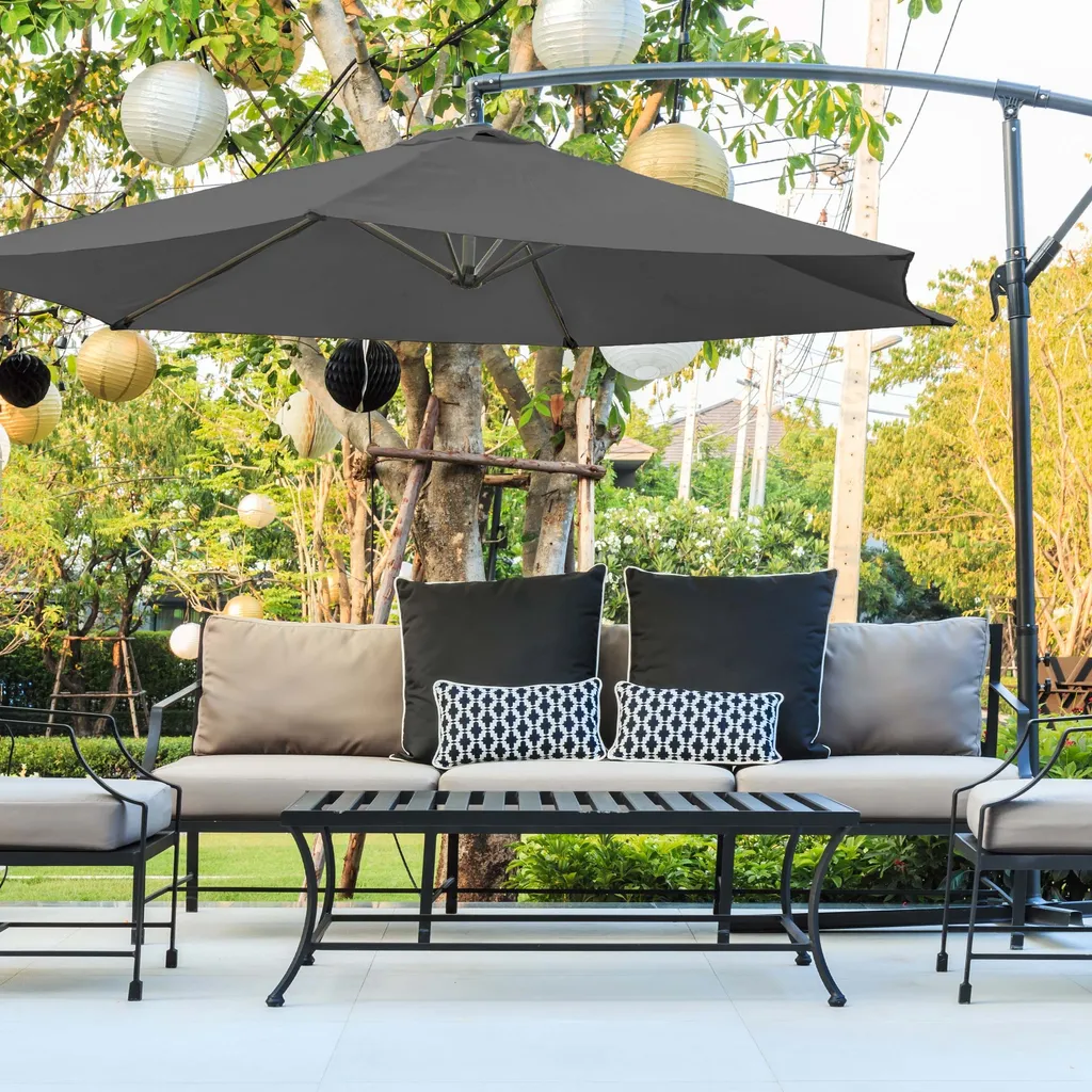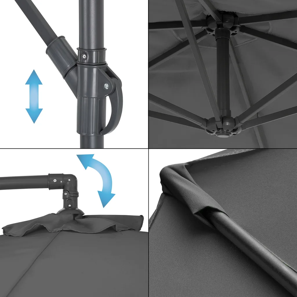 ECD Germany Ampelschirm Mit Kurbel Und Ständer, Ø 270 Cm, Grau, Aus Aluminium, Rund, Sonnenschutz UV50+, Wasserabweisende Bespannung, Neigbar, Marktschirm Gartenschirm Kurbelschirm Terrassenschirm Schirm