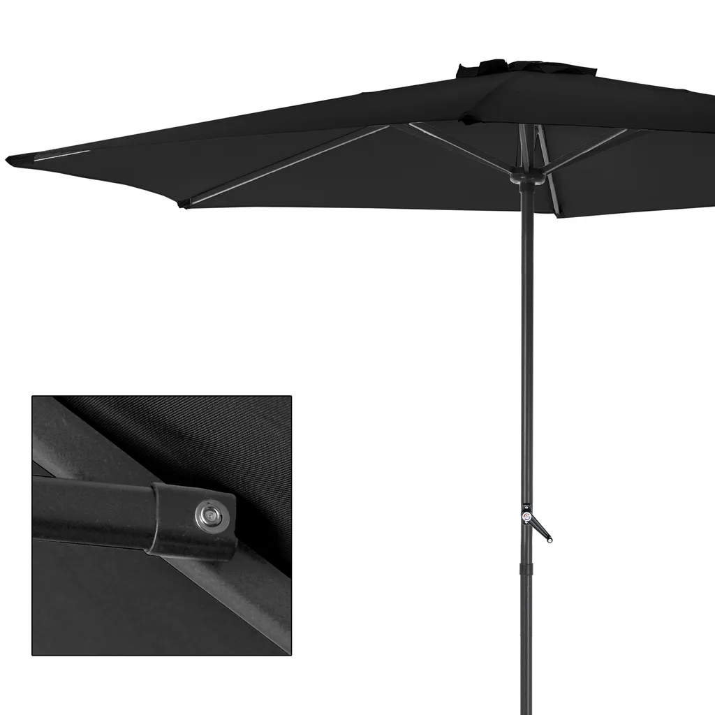 ECD Germany Sonnenschirm Rund Mit Kurbel, Ø 300 Cm, Schwarz, Aus Polyester, Wasserabweisende Bespannung, Sonnenschutz UV50+, Neigbar, Knickbar, Marktschirm Ampelschirm Gartenschirm Kurbelschirm Terrassenschirm