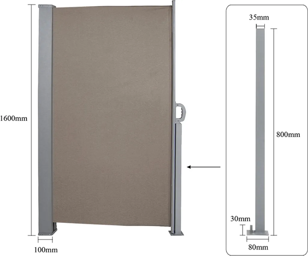 EINFEBEN Seitenmarkise Markisen Ausziehbar 160x300cm Alu Sichtschutz Windschutz Sonnenschutz Seitenrollo Braun