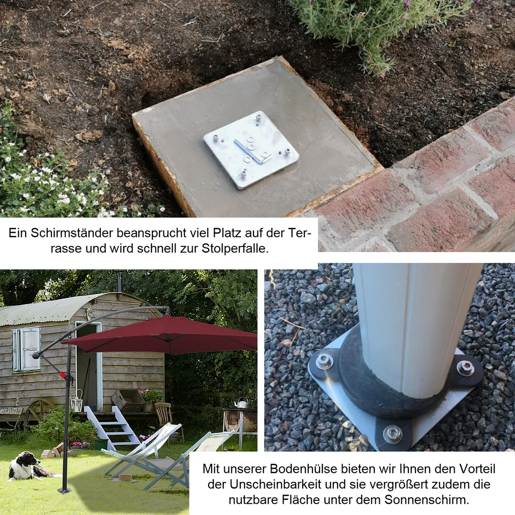 EINFEBEN Universal Bodenplatte Metall Sonnenschirmstaender Fuer Sonnenschirm Ampelschirm Kurbelschirm Bodentraeger Bodenanker Einfache Montage 16 X 16 Cm