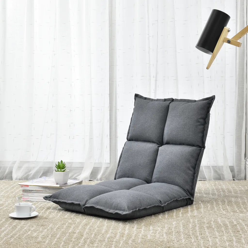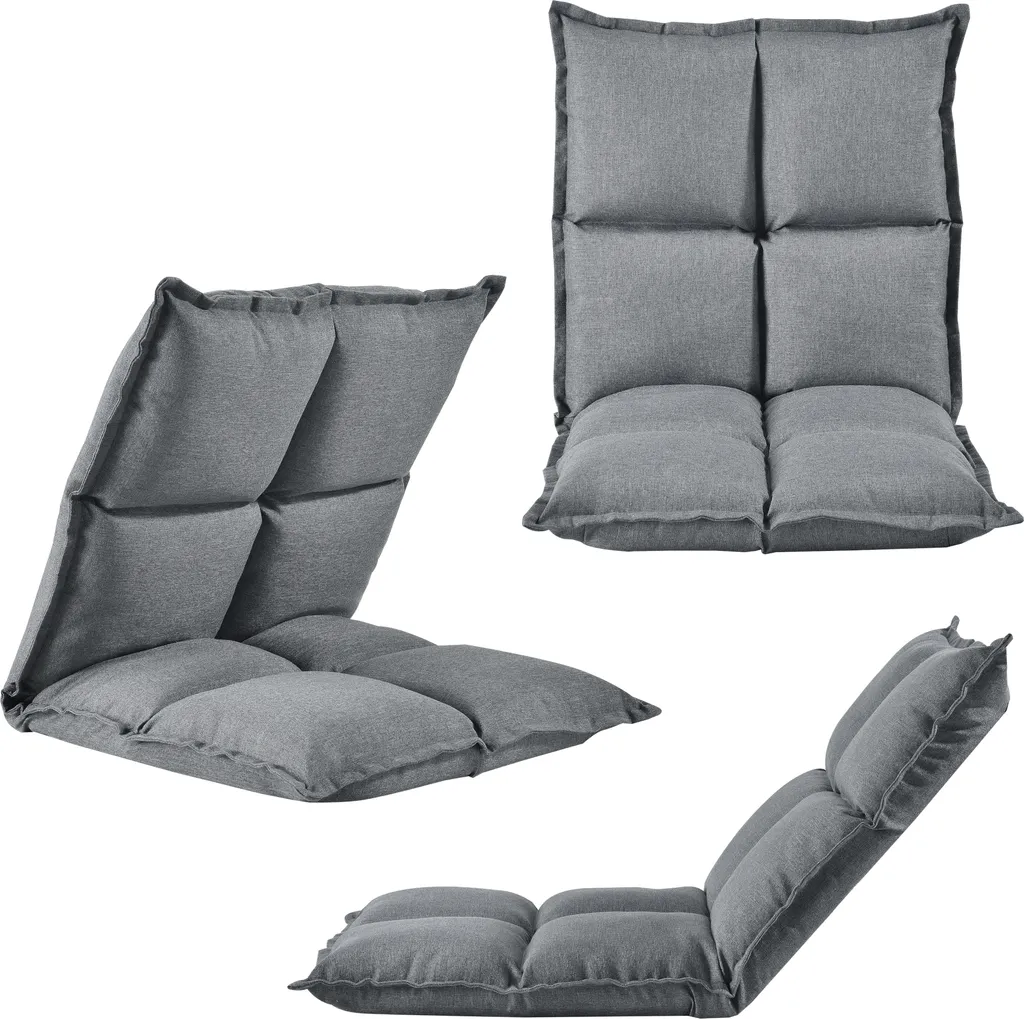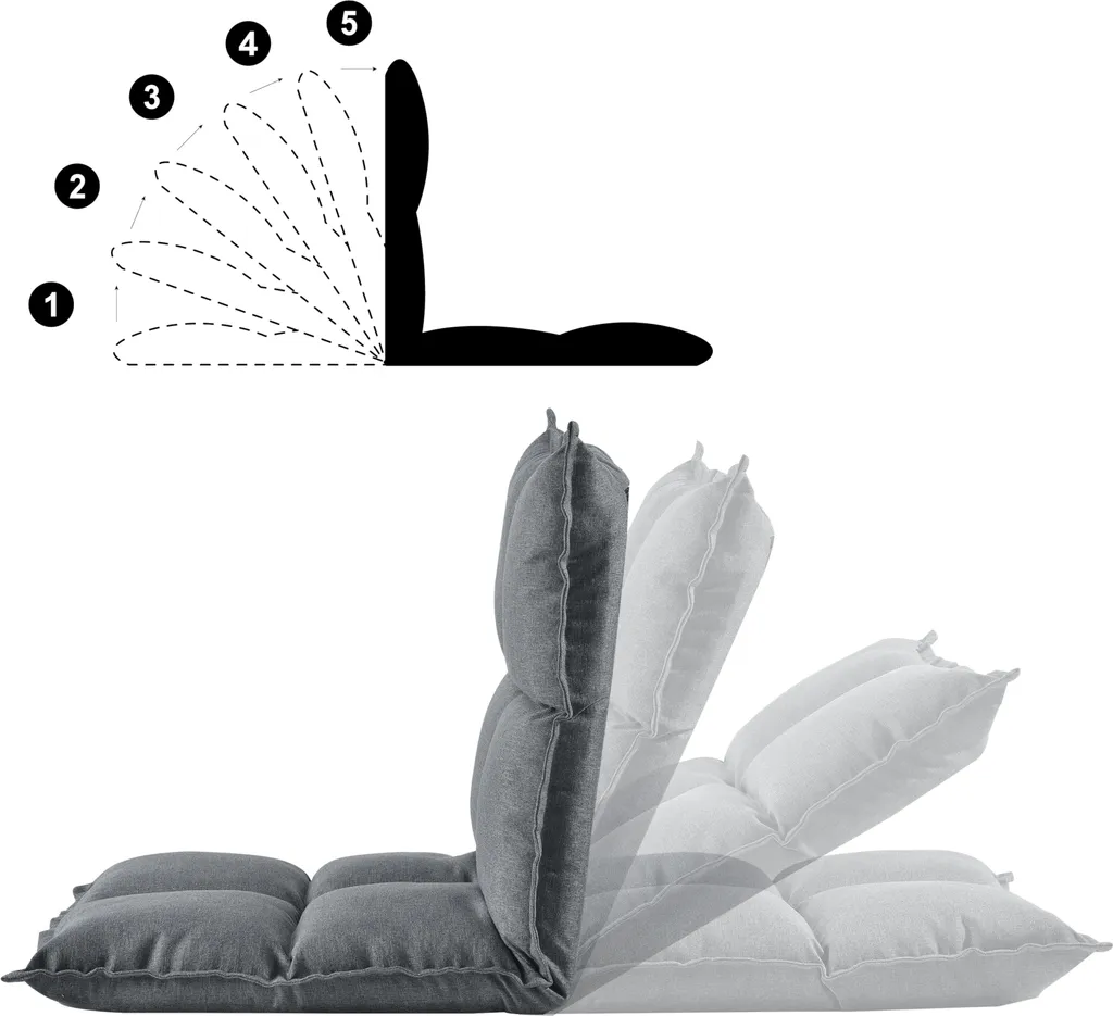 [en.casa] Bodenstuhl Klappbar Bodensessel 5-stufig Verstellbare Klappliege Relaxliege Faules Sofa 5 Positionen Bodenliege Sitzkissen Hellgrau