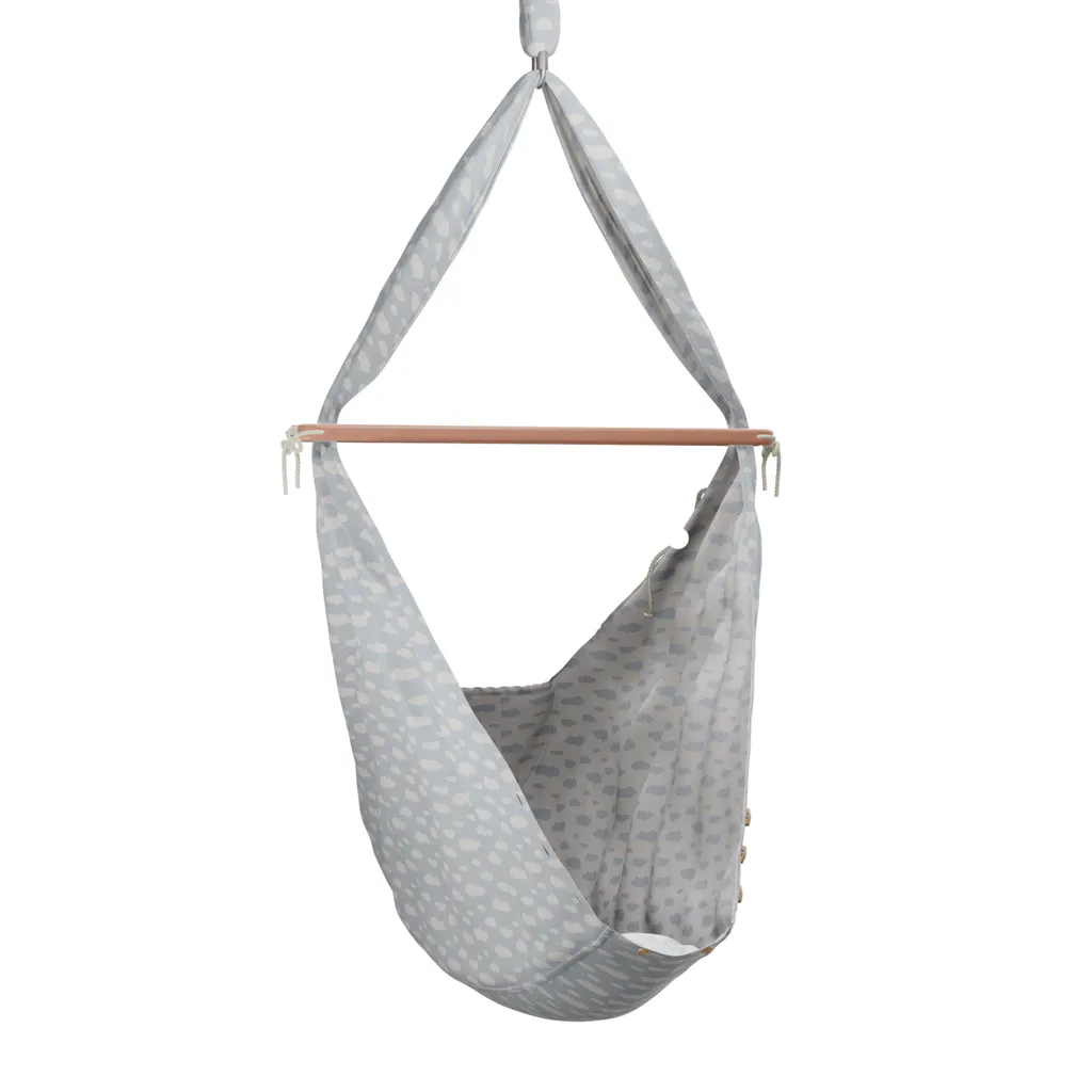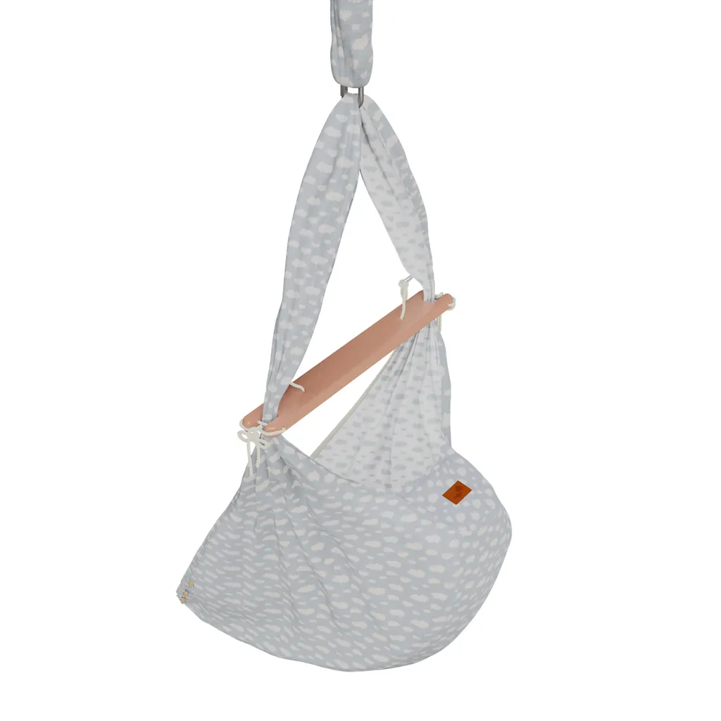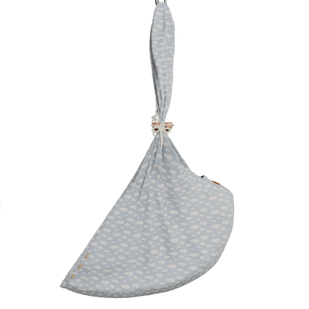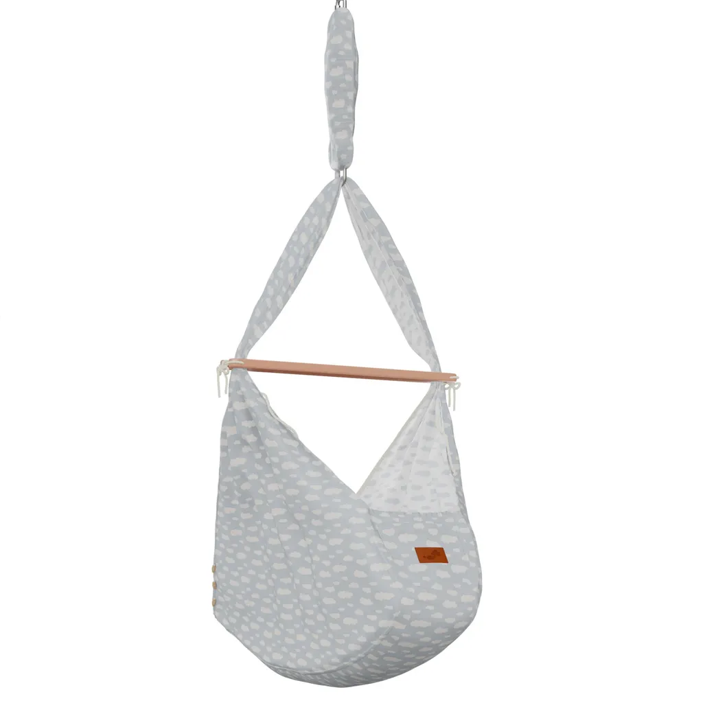 Federwiege Mit Deckenbefestigung Clouds BabyBlue Schafwolle