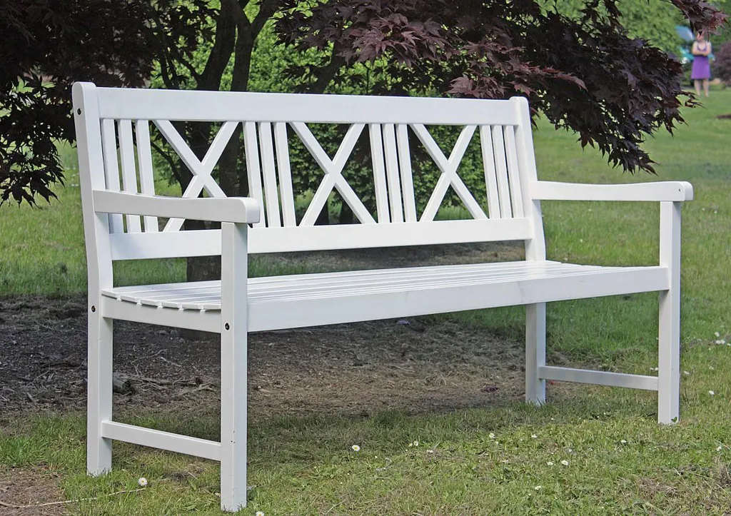 Garden Pleasure Gartenbank Bank MALMÖ 3-Sitzer B 154 X T 59 X H 89 Cm, Bank Aus Weiß Lackiertem Eukalyptus-Holz