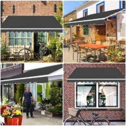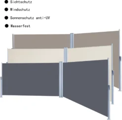 EINFEBEN Doppel Seitenmarkise Markisen Wandmarkise 160x600cm Ausziehbar Garten Sichtschutz Braun