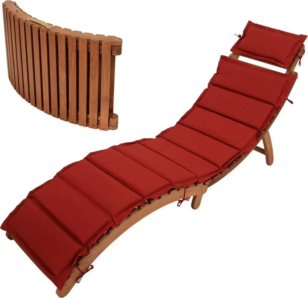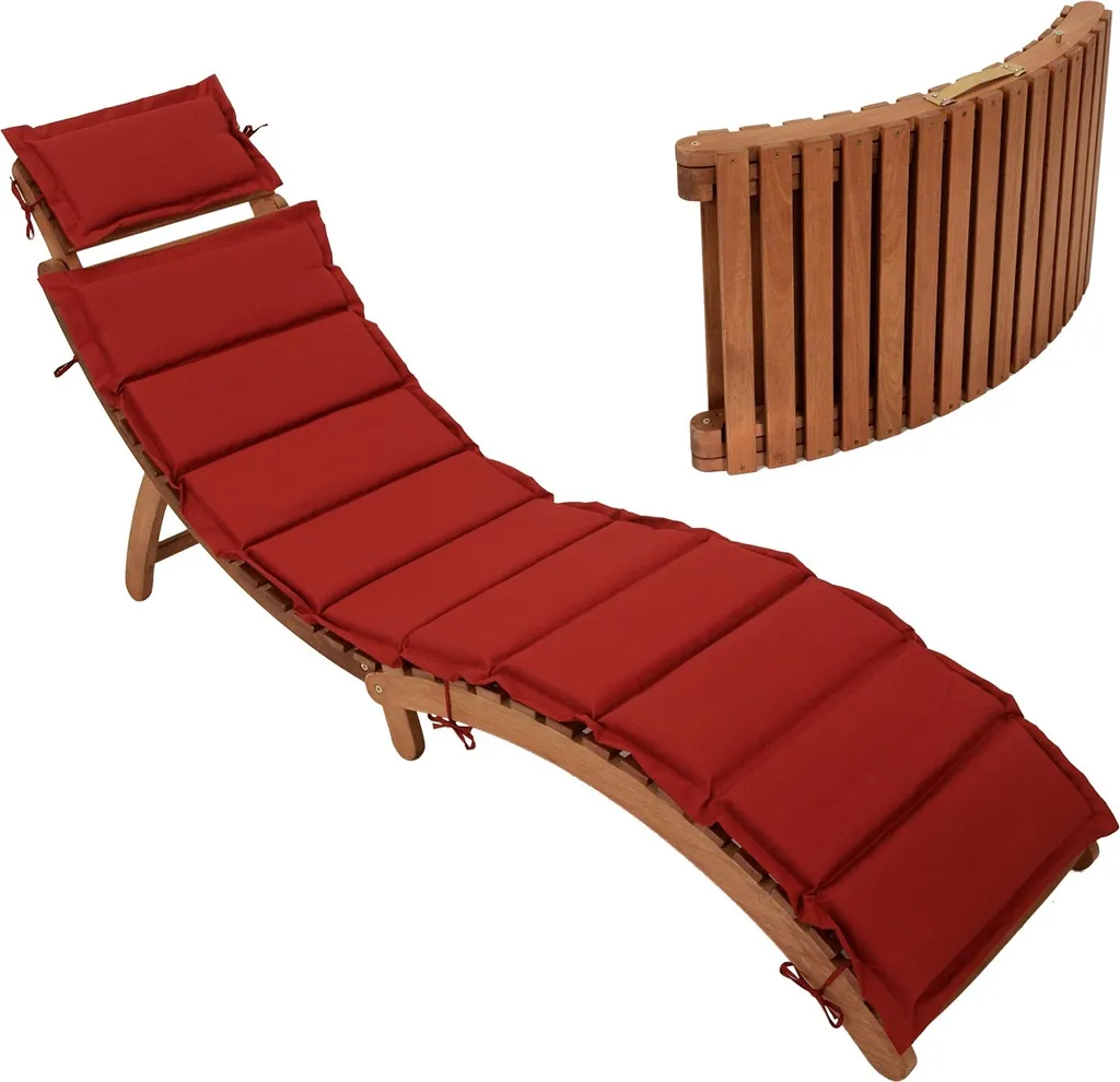 Gartenliege Klappbar, Akazie Geölt, Mit Auflage Rot,