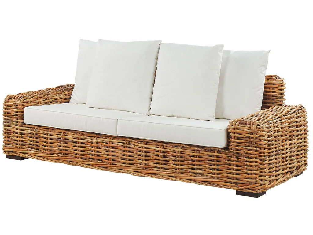 Gartensofa Natürlich Cremeweiß Rattan 3-Sitzer Für Garten Für Terasse Für Innenbereich Für Aussenbereich
