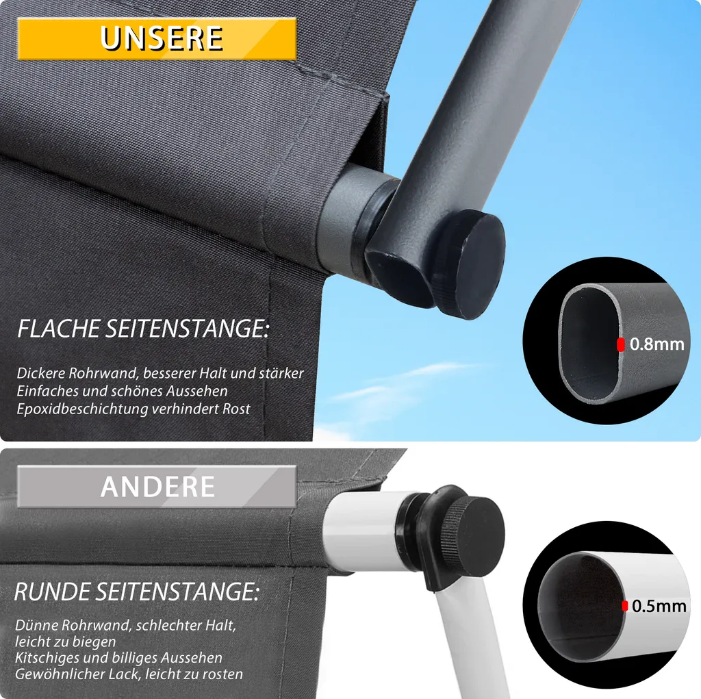 Grandekor Klemmmarkise Markise Balkon Ohne Bohren Faltbar, 200cm X (125+25cm) Anthrazit, Mit Verlängerten Seitenstangen, UV-beständig Balkonmarkise Höhenverstellbar, Wasserdicht
