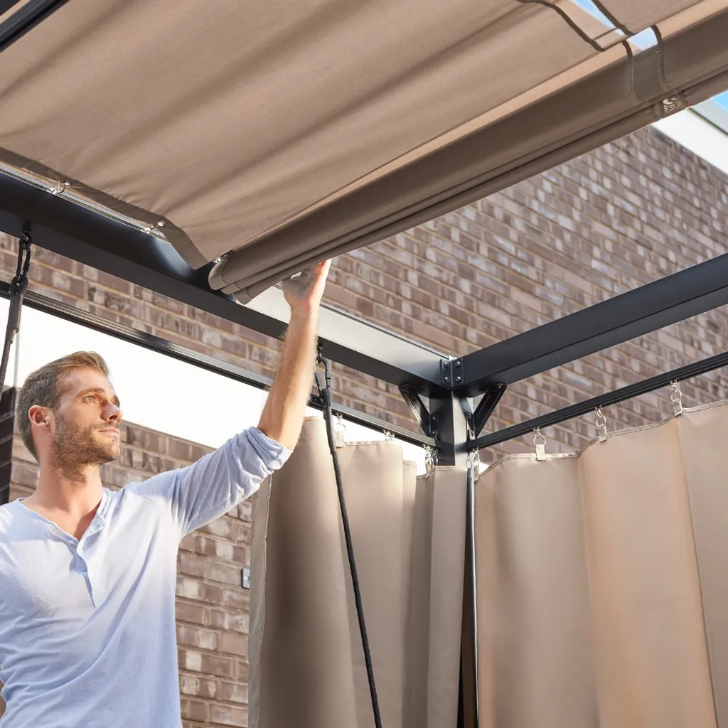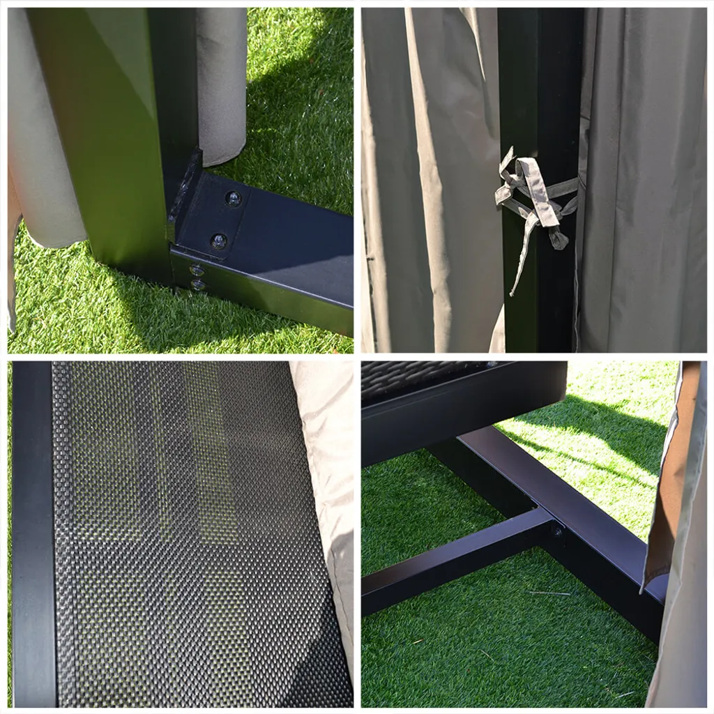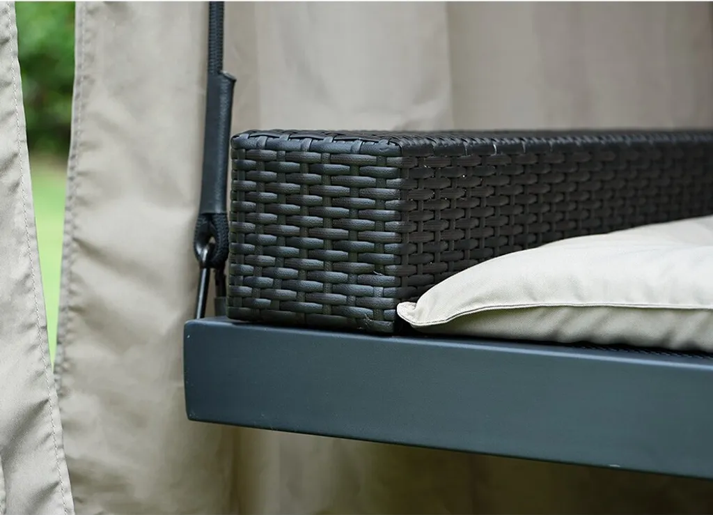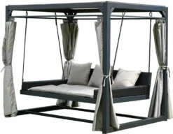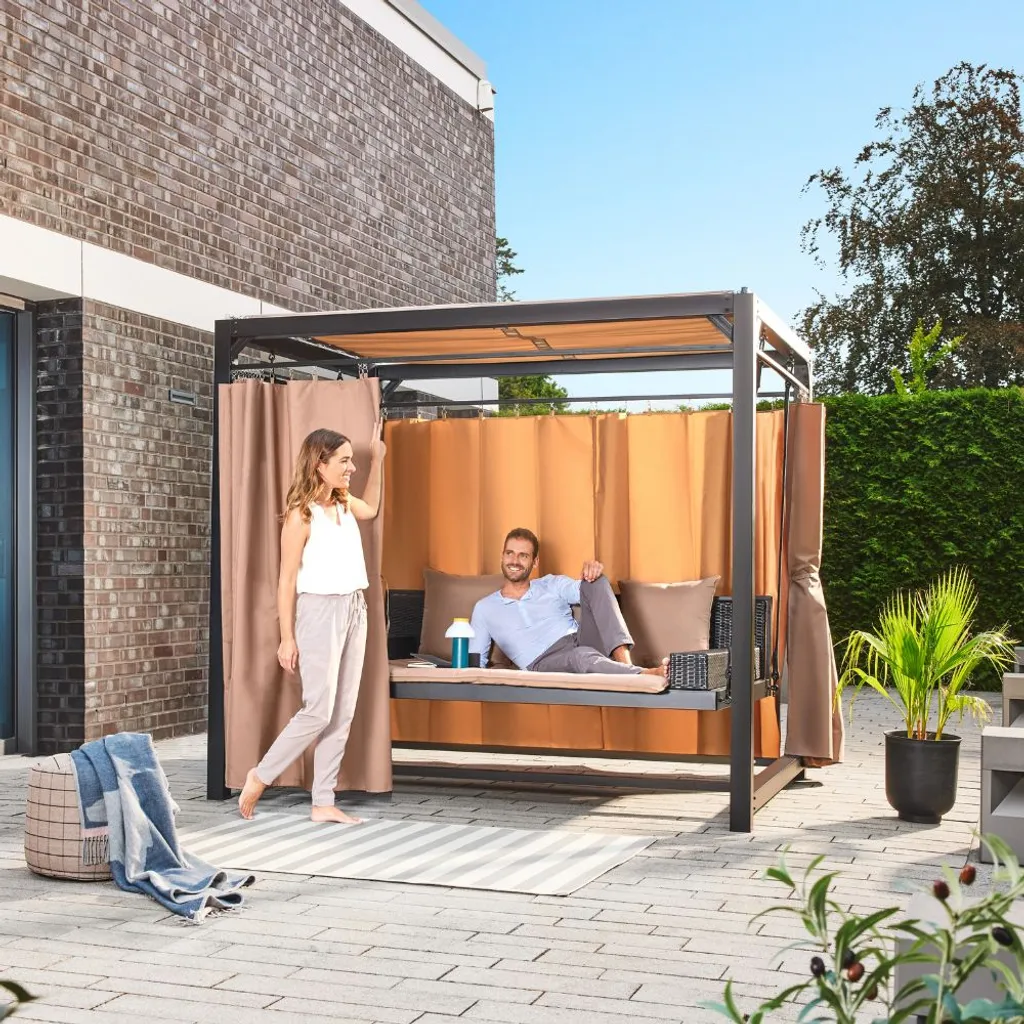 HOME DELUXE Pavillon Gartenliege PROVENCE – 236 X 180 X 210 Cm |Gartenliege Mit Sonnendach, Schwebeliege Mit Rattanbett, Doppelliege, Hollywoodschaukel