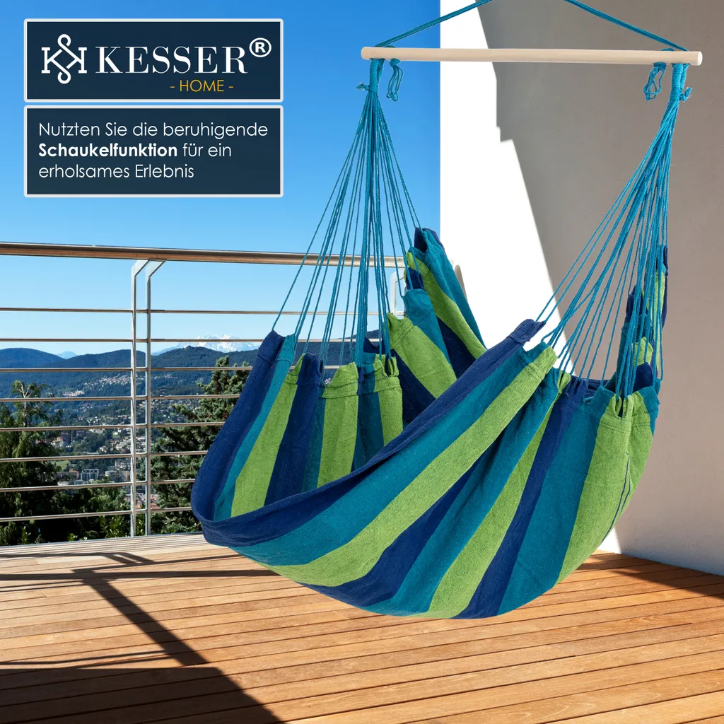 KESSER® Hängestuhl Hängesessel Hängeschaukel Textil Hängesitz Holz Querstrebe Indoor Outdoor Bis 150 Kg Wetterfest UV Beständig , Waschbar , Farbe:Blau