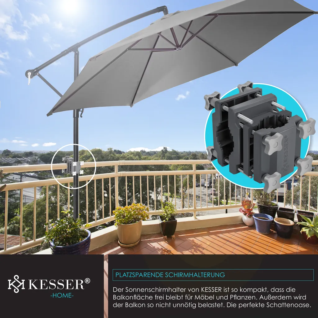 KESSER® Premium Sonnenschirmhalter Universal Balkongeländer – Schirmständer Für Eckige Und Runde Schirme | Balkon Terrasse Sonnenschirm Halterung Hohe Flexibilität | Starke Klemmkraft, Farbe:Anthrazit / Grau