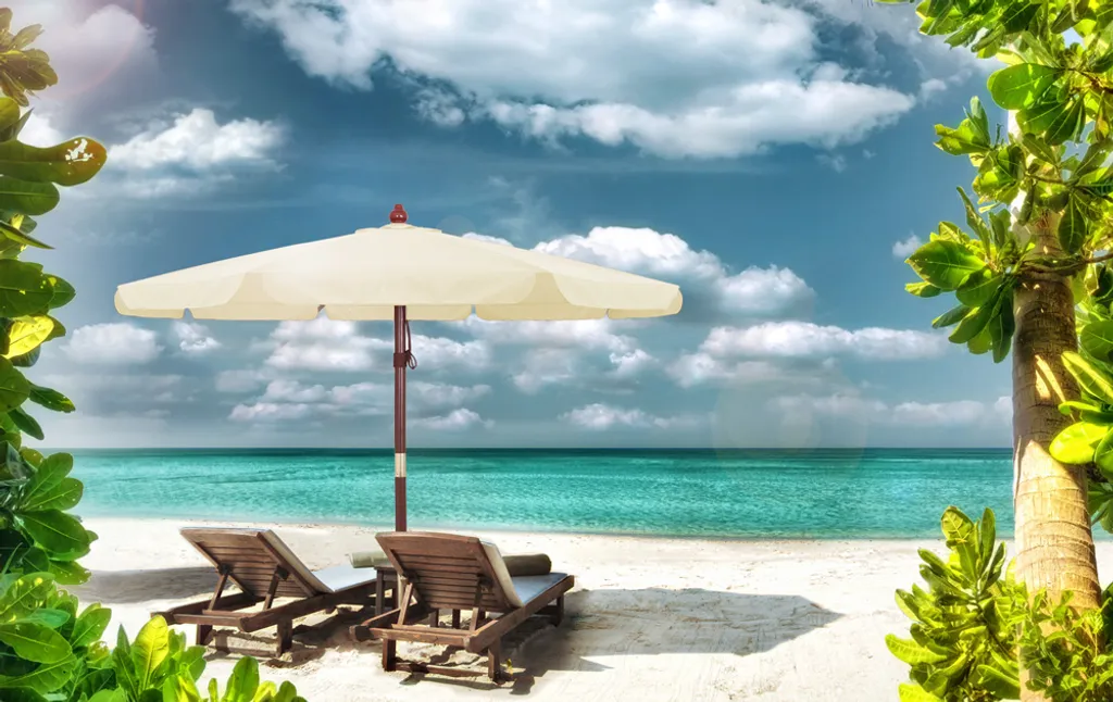 Kingsleeve Holz Sonnenschirm 330 Cm UV Schutz 50+ Wasserabweisend Seilzug Groß Rund Stabil Windfest Marktschirm Gartenschirm Balkon Beige Creme, Farbe:creme