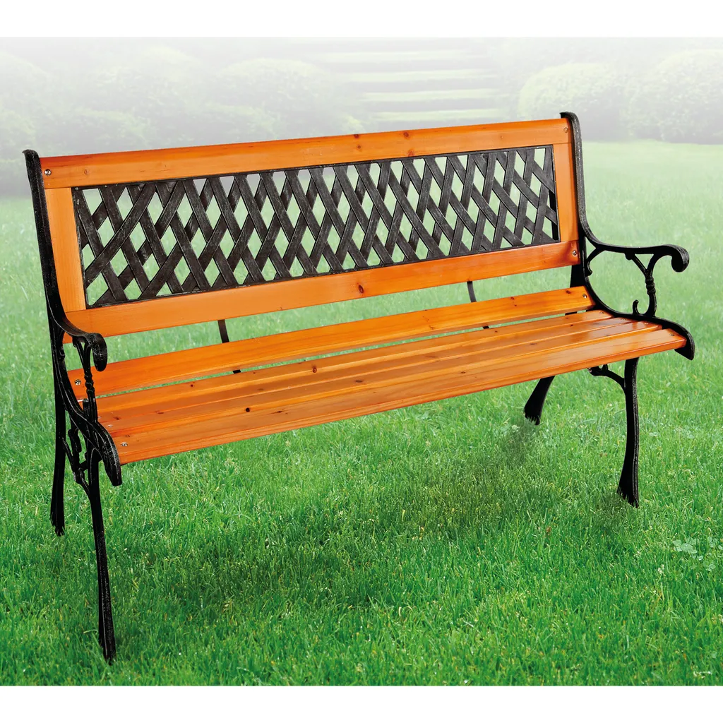 Massivholz Parkbank Gartenbank Metall Pulverbeschichtet Und Hartkunststoff Natur/Schwarz
