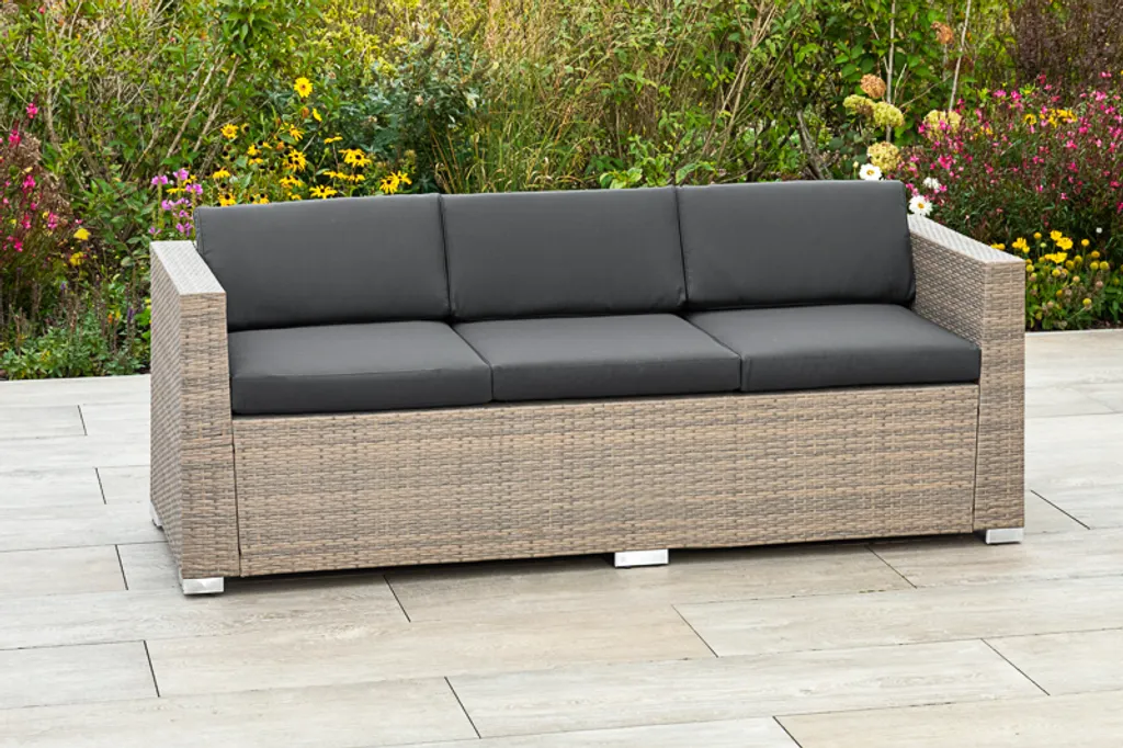 Merxx Bank „Bellante“ 3-sitzig – Stahlgestell Mit Kunststoffgeflecht Mudbraun, Inkl. Kissen