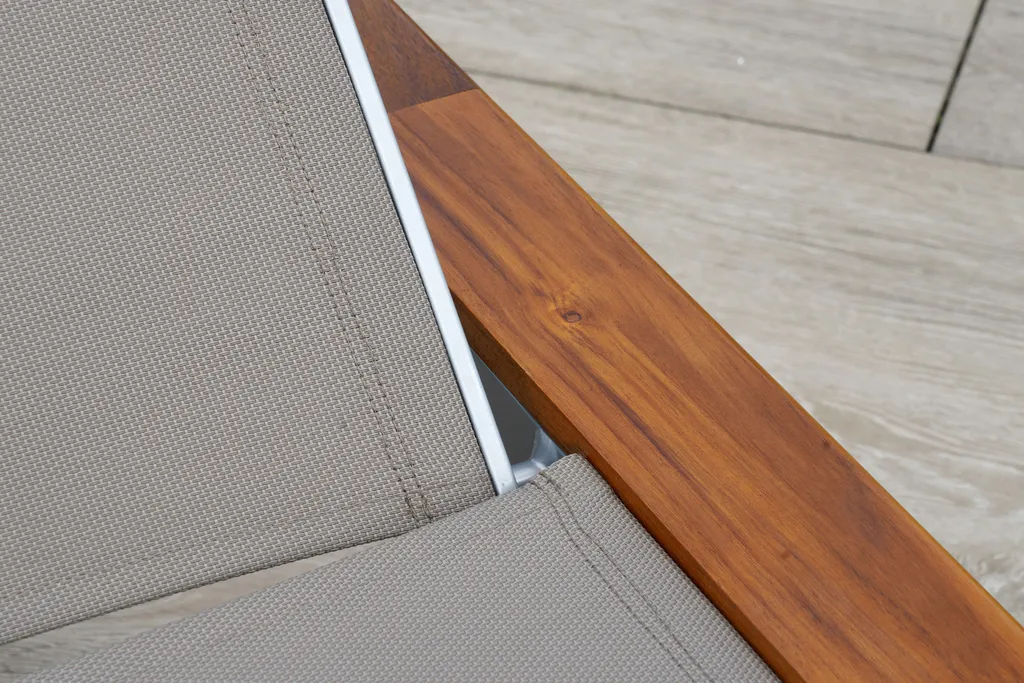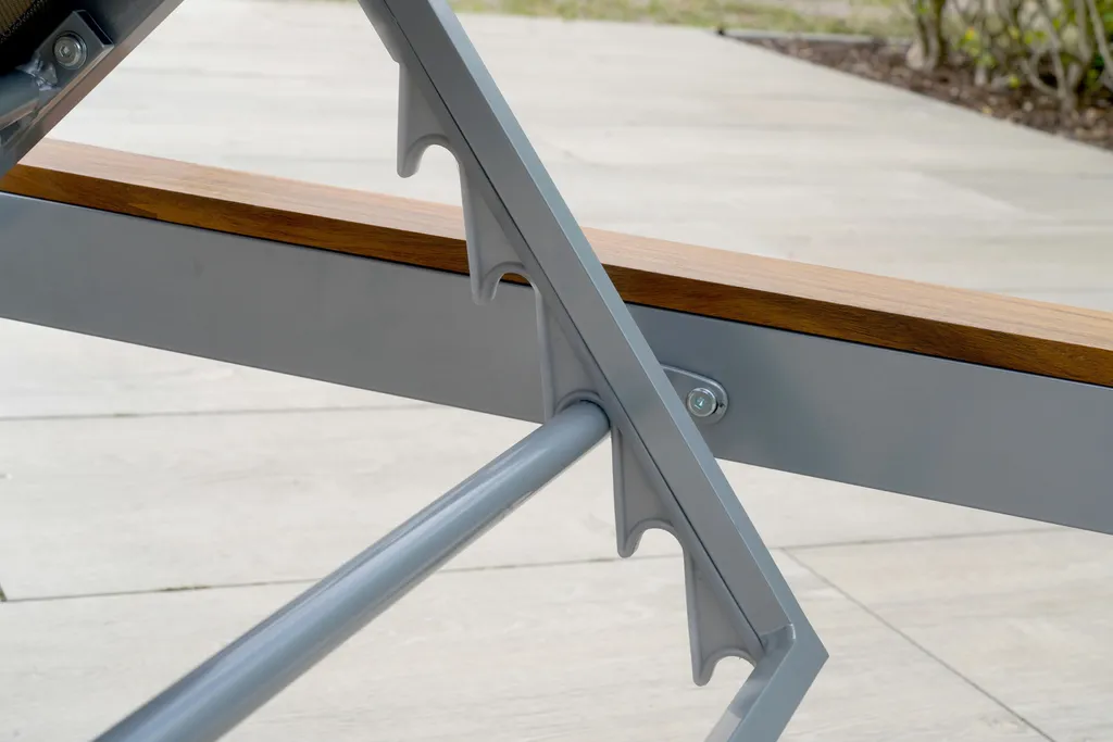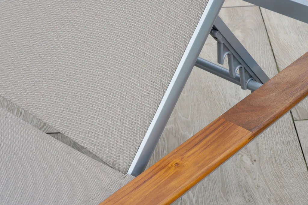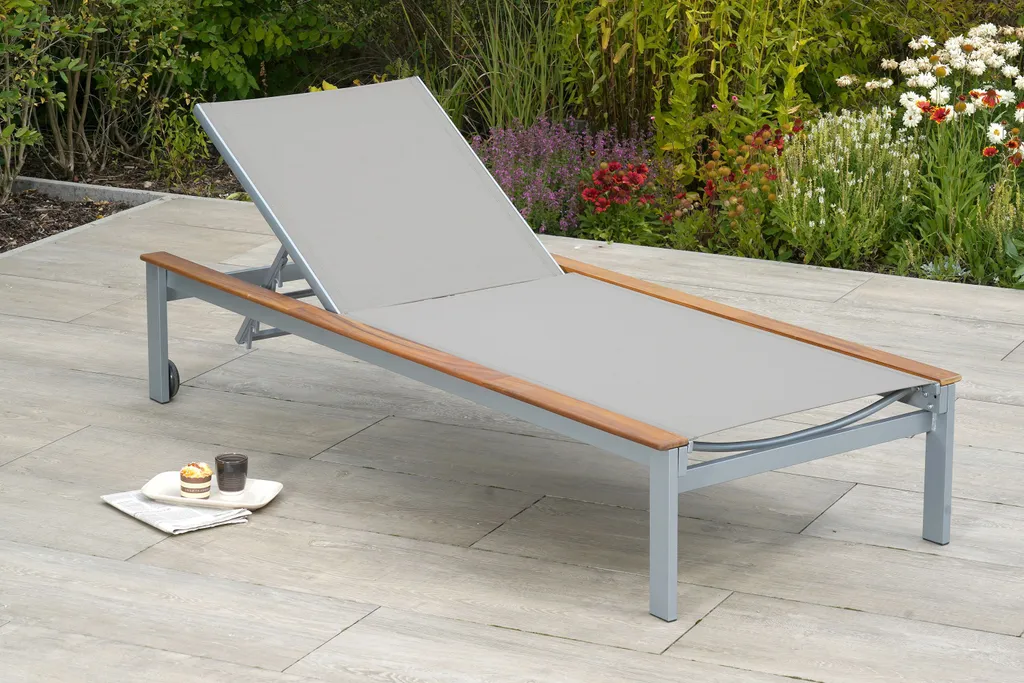 Merxx Gartenliege „Naxos“ – Aluminiumgestell Silber Mit Akazienholz Und Textilbespannung Grau