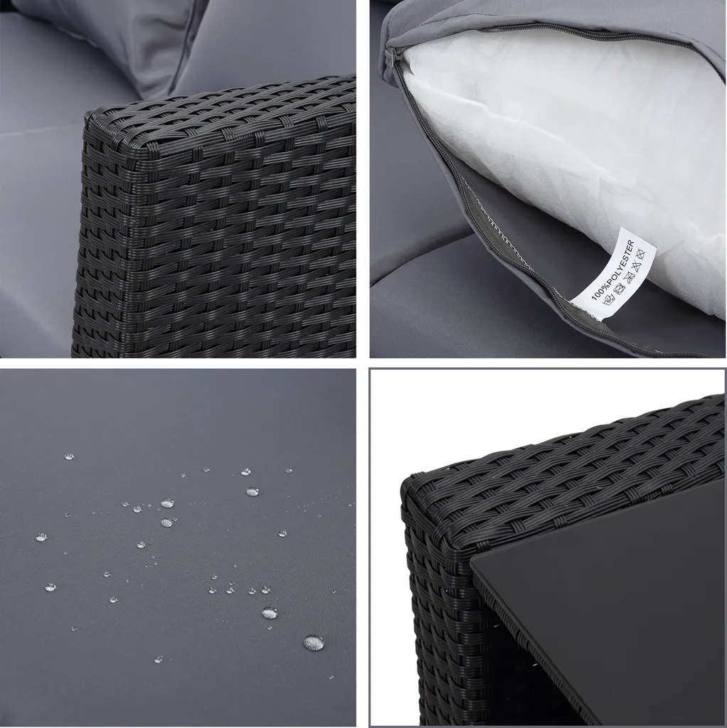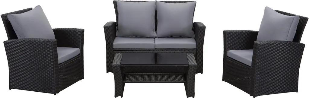 MeXo Gartenmöbel Set Lounge Set Polyrattan Lounges 4-teile Für 3-4 Personen Garten & Balkon Sitzmöbel-Set Schwarz