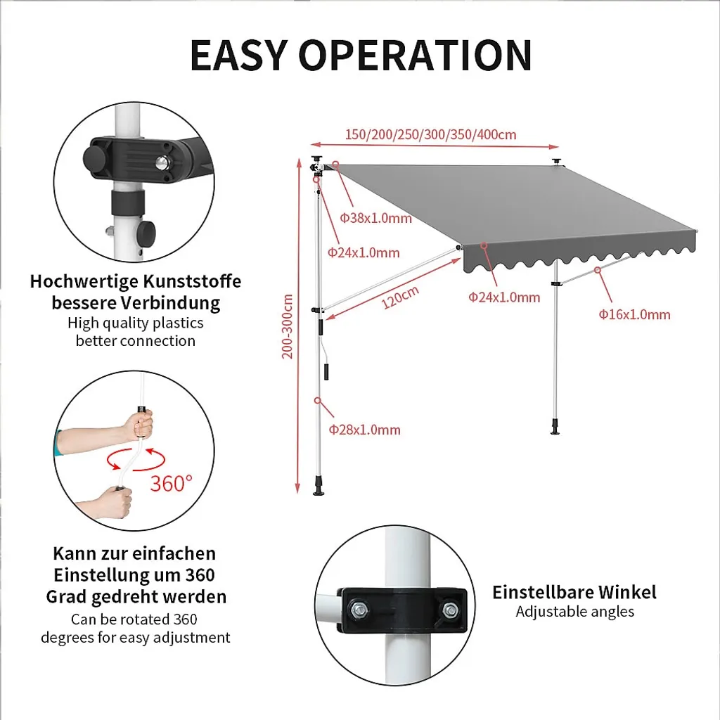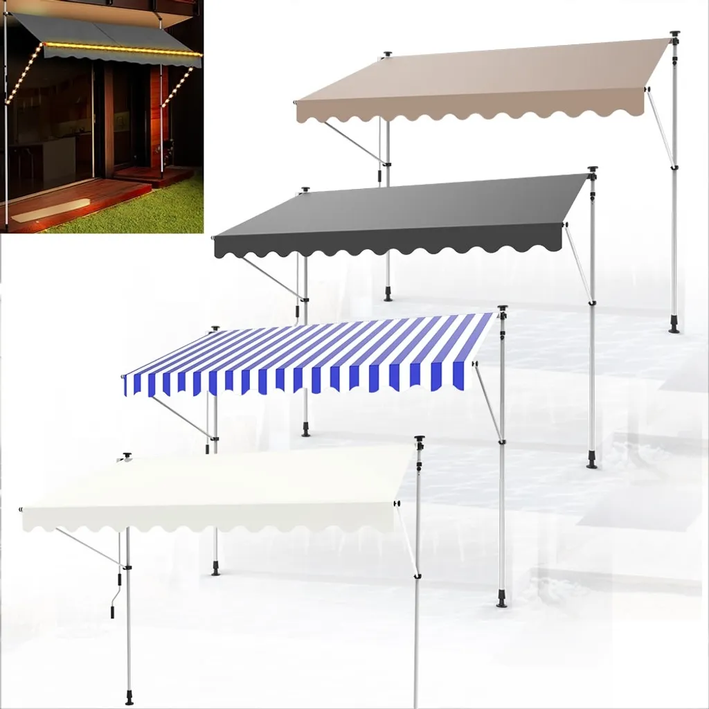 Mucola Klemmmarkise 300-120cm Grau Mit LED Balkon Markise Sonnenschutz Terasse Fenstermarkise Balkonmarkise Sonnensegel Windschutz Rollo