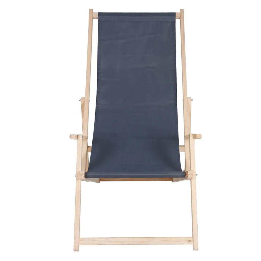 Mucola Strandliege Strandstuhl – Klappbar – Anthrazit Holz Liegestuhl Gartenliege Sonnenliege Strandstuhl Faltliege