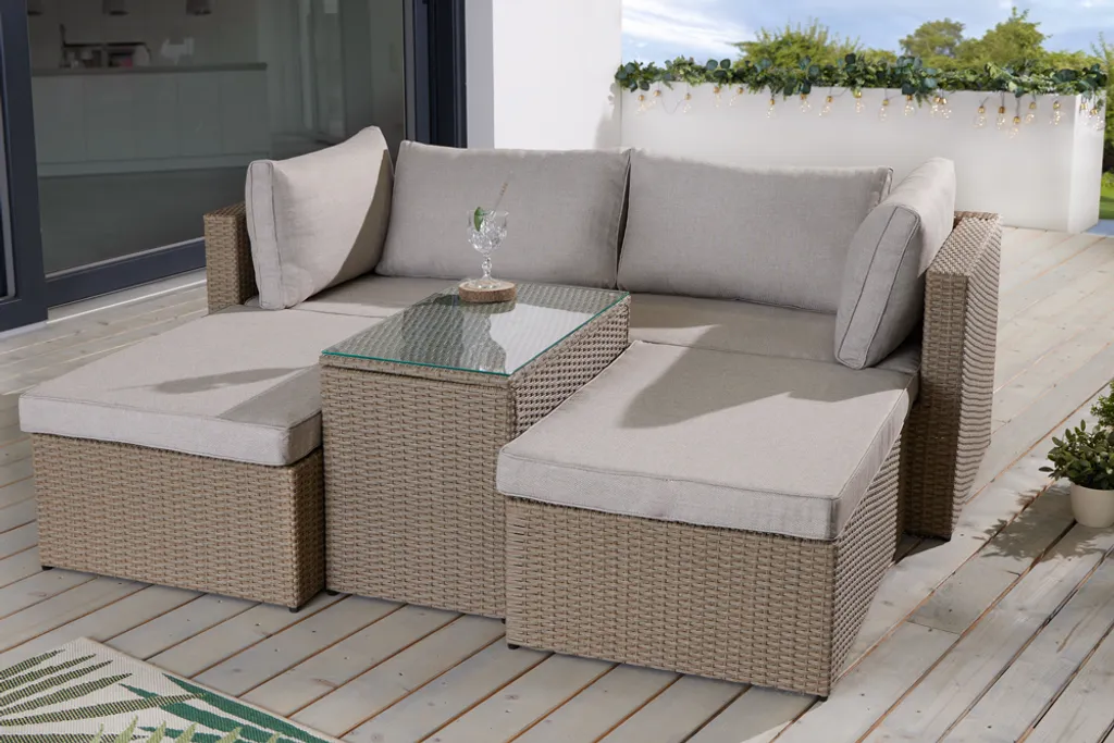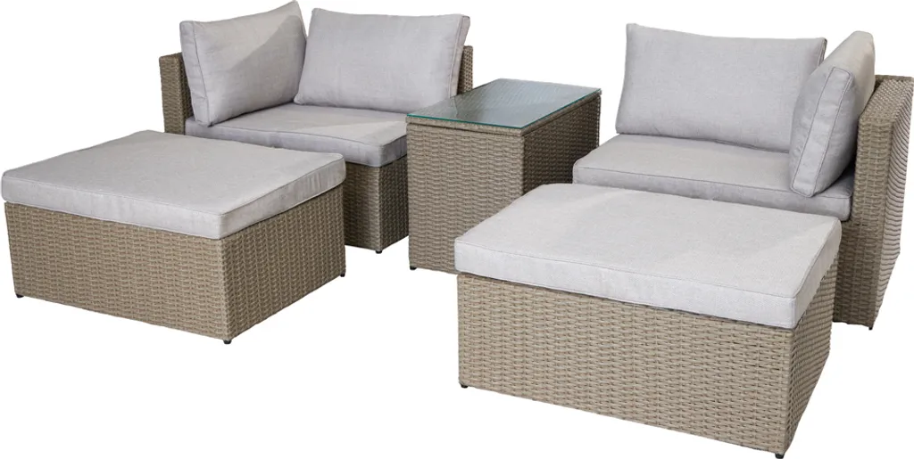 Outdoor Garten Lounge Set XXL MODULAR Natur Polyrattan Sitzgruppe Inklusive Kissen