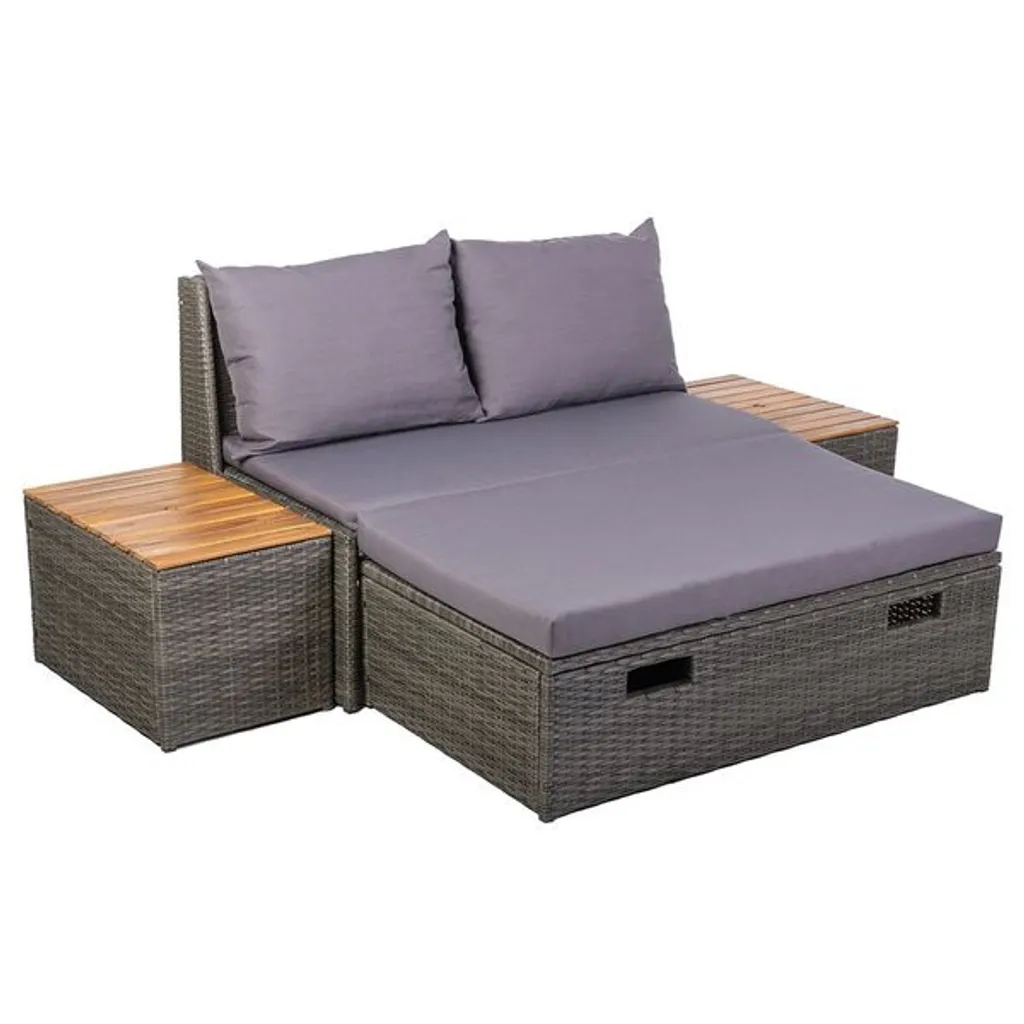 OUTLIV. Multifunktionales Gartensofa Aluminium/Rattan Natur|Hellgrau