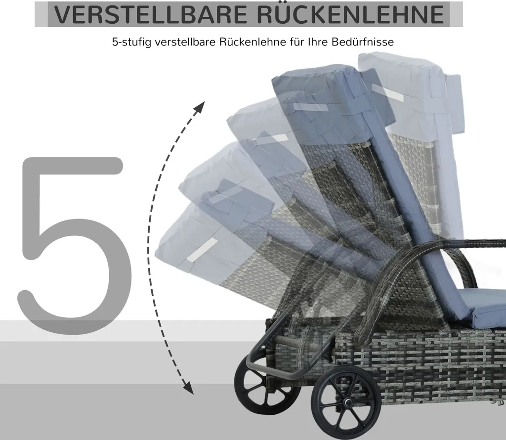 Outsunny Gartenliege Sonnenliege Rattanliege Gartenmöbel Liege Mobil Mit Kissen, Polyrattan+Metall, Grau, 200 X 73 X 30-103 Cm