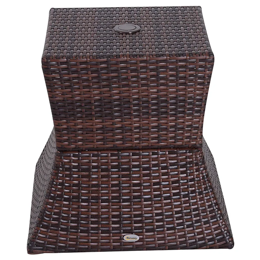 Outsunny Gartentisch Beistelltisch Sonnenschirmständer Gartenmöbel Terrasse Polyrattan Braun 54 X 54 X 55 Cm