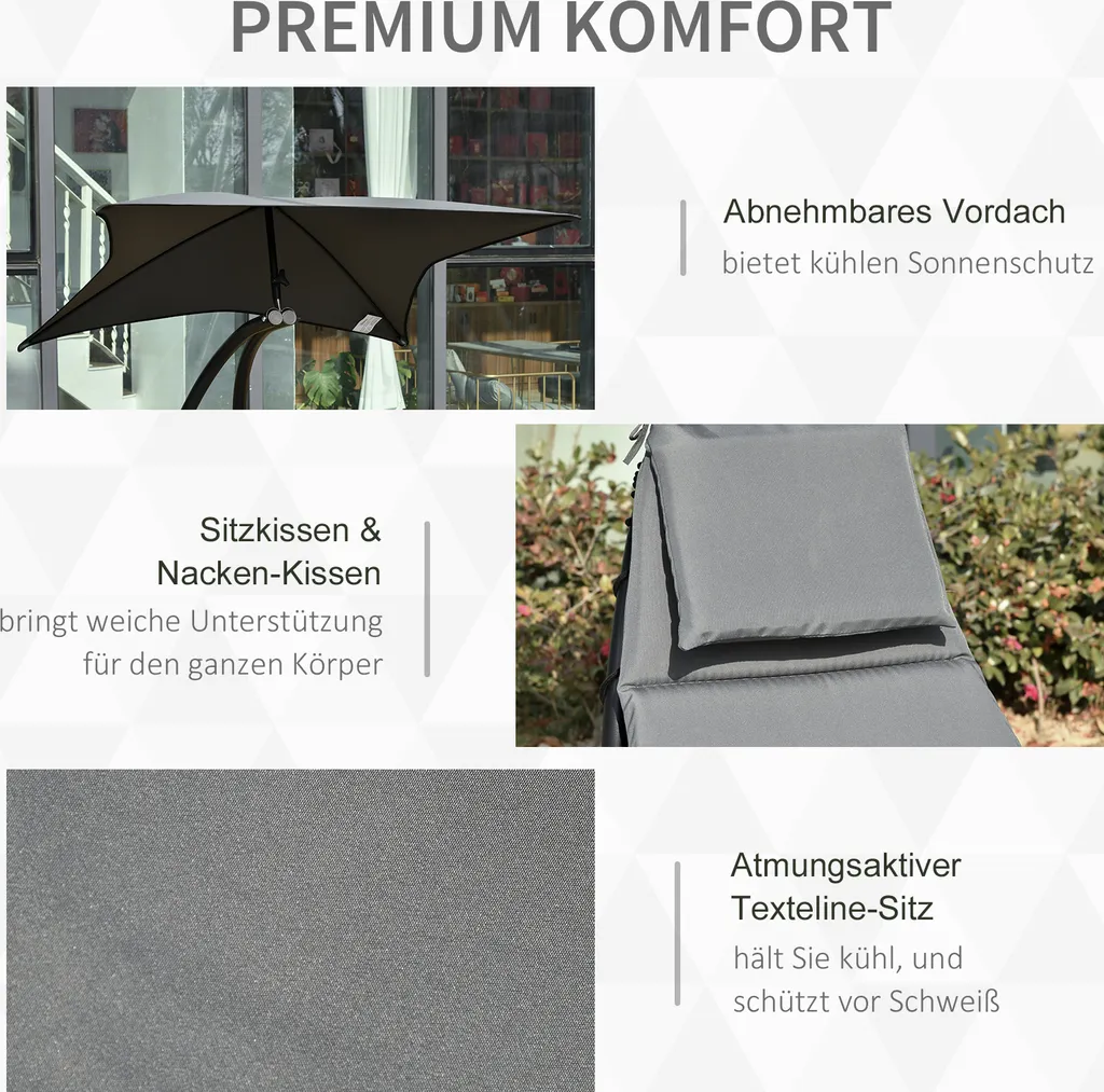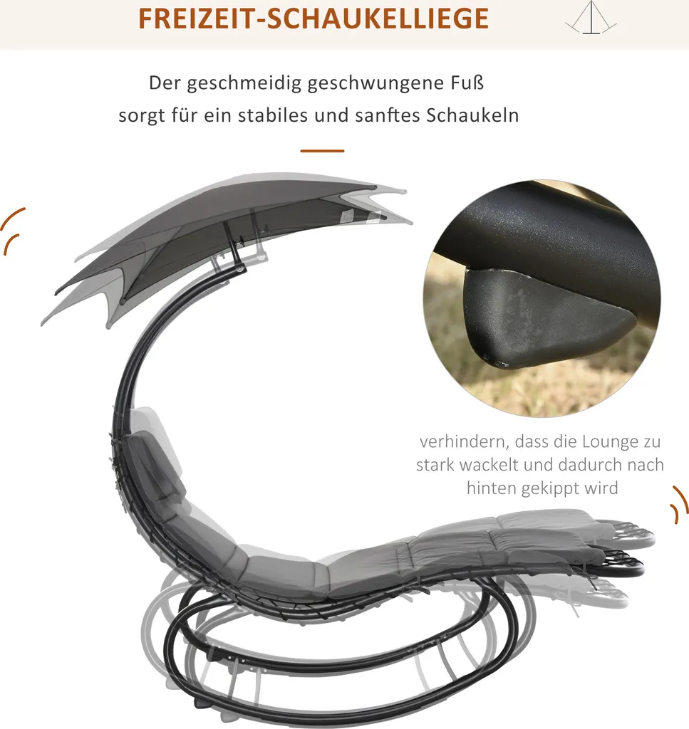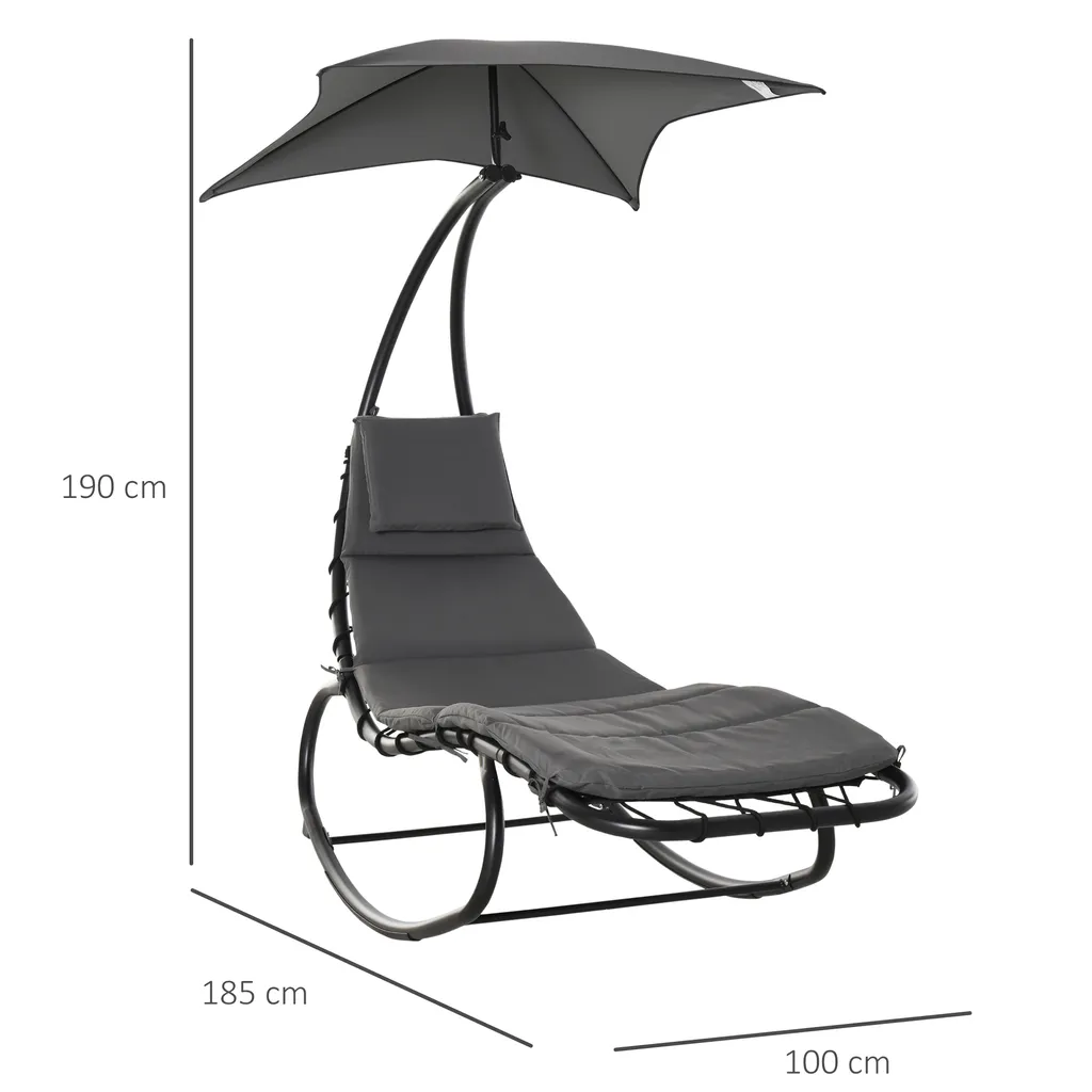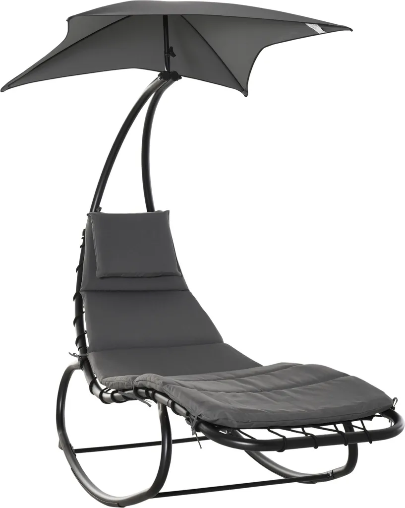 Outsunny Schaukelliege Schaukelstuhl Relaxliege Mit Dach Garten Balkon Büro Dunkelgrau 185 X 100 X 190 Cm