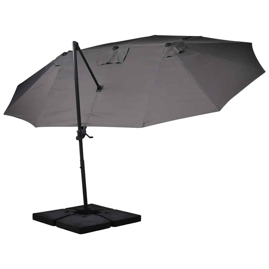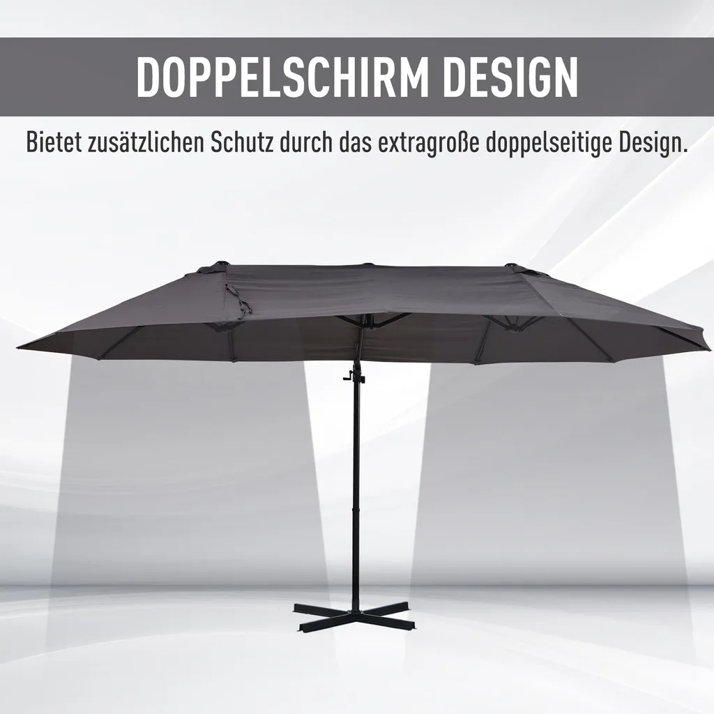 Outsunny Sonnenschirm Mit Kurbel, Doppelschirm, Verstellbarer Gartenschirm, Sonnenschutz, Metall, Grau, 460 X 270 X 250 Cm