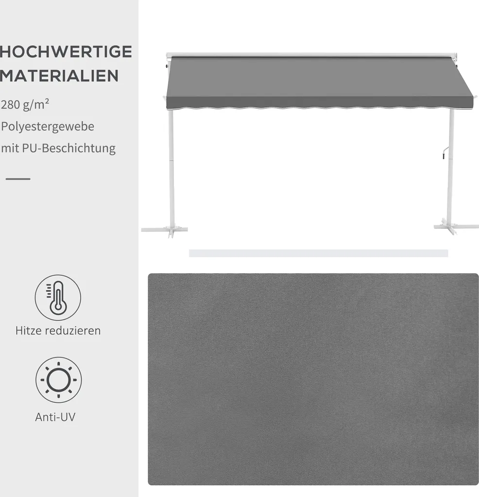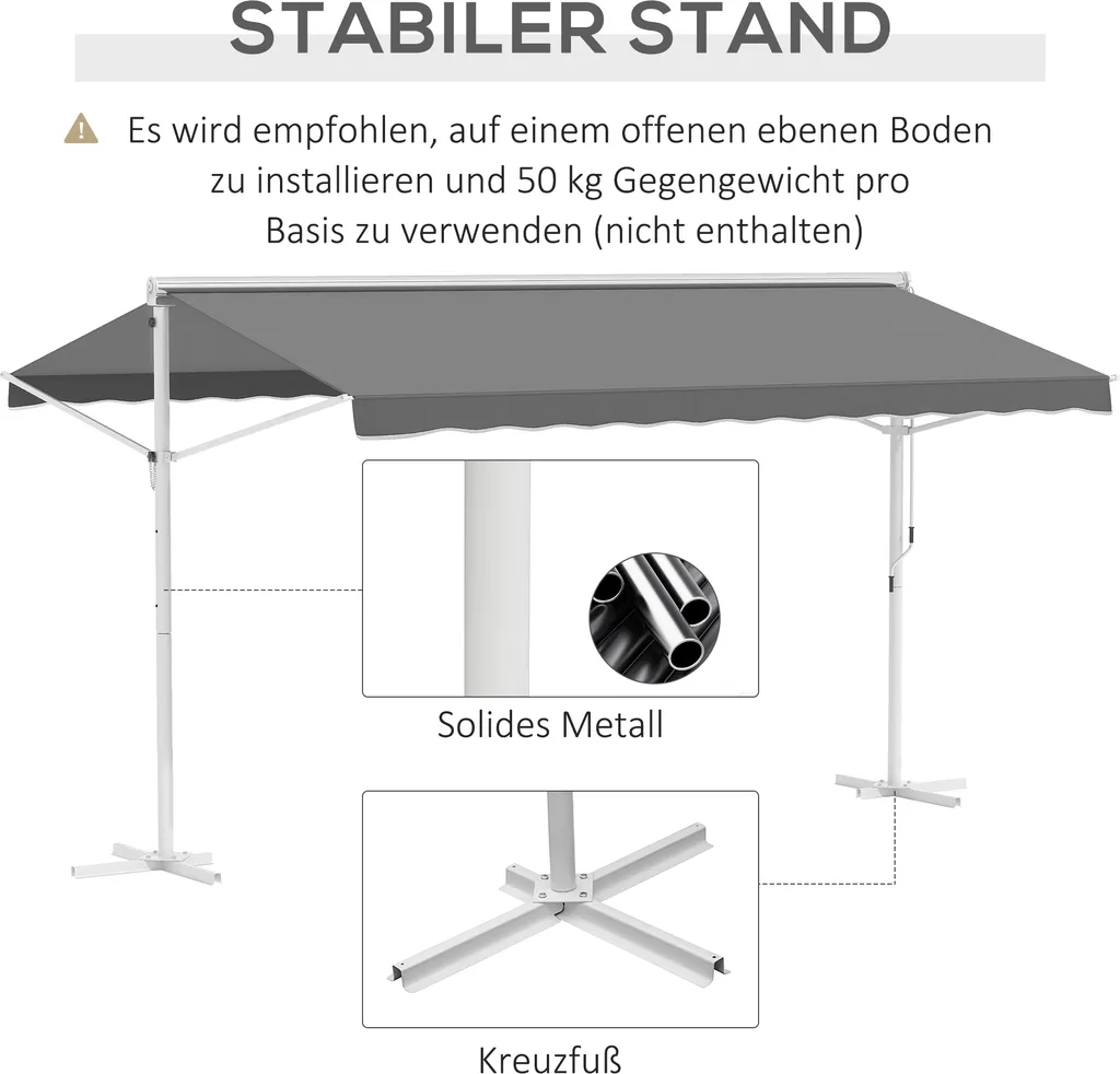 Outsunny Standmarkise Gartenmarkise Markise Mit Faltarm Kurbel Terrasse Grau 4,5×3,42m