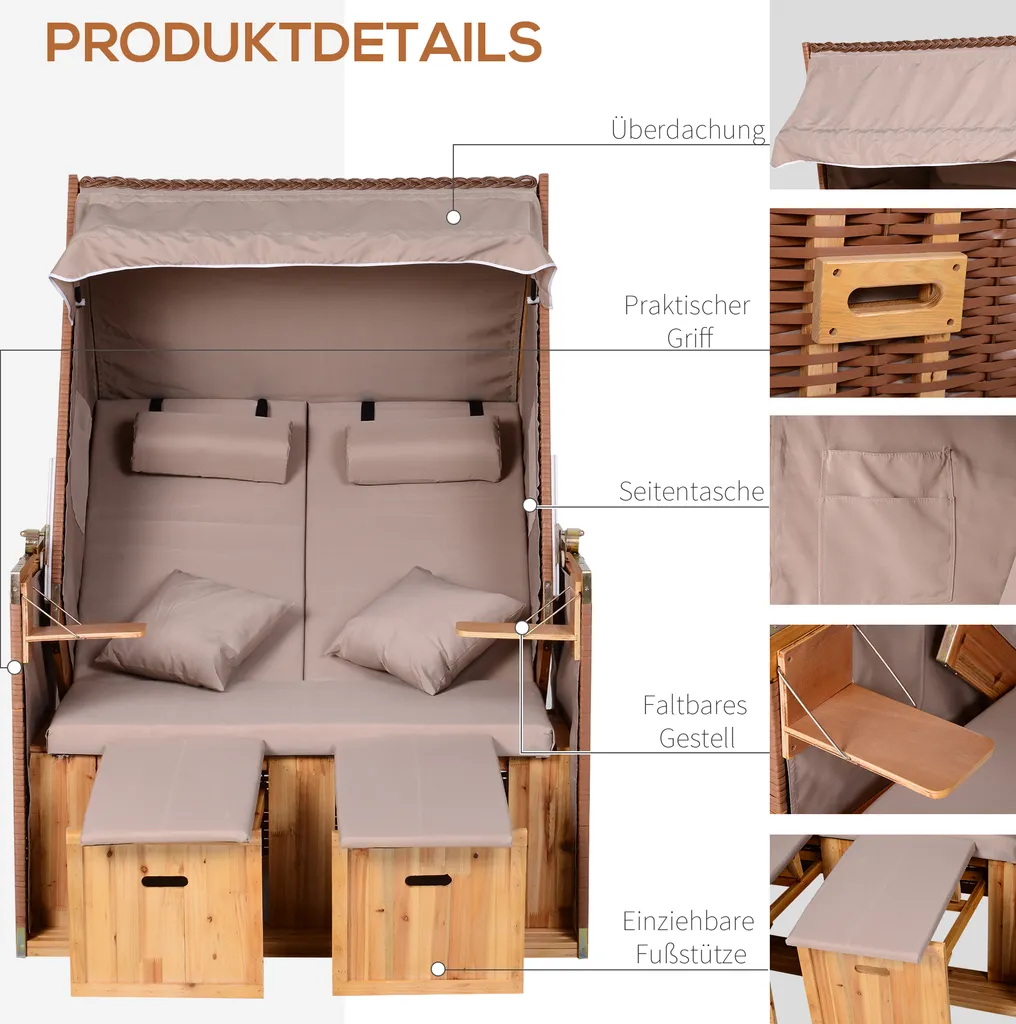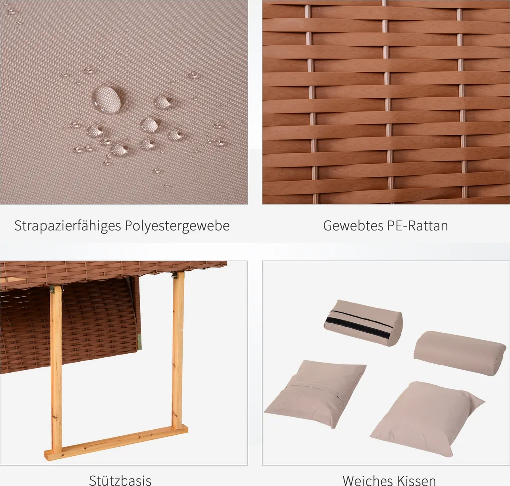 Outsunny Strandkorb Volllieger Gartenliege Getrankehaltern PE Rattan Beige 118 X 79 X 50 Cm