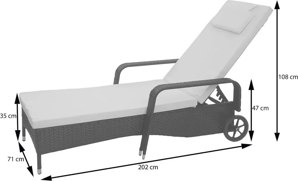 Poly-Rattan Sonnenliege Carrara, Relaxliege Gartenliege Liege, Alu Anthrazit, Kissen Grau