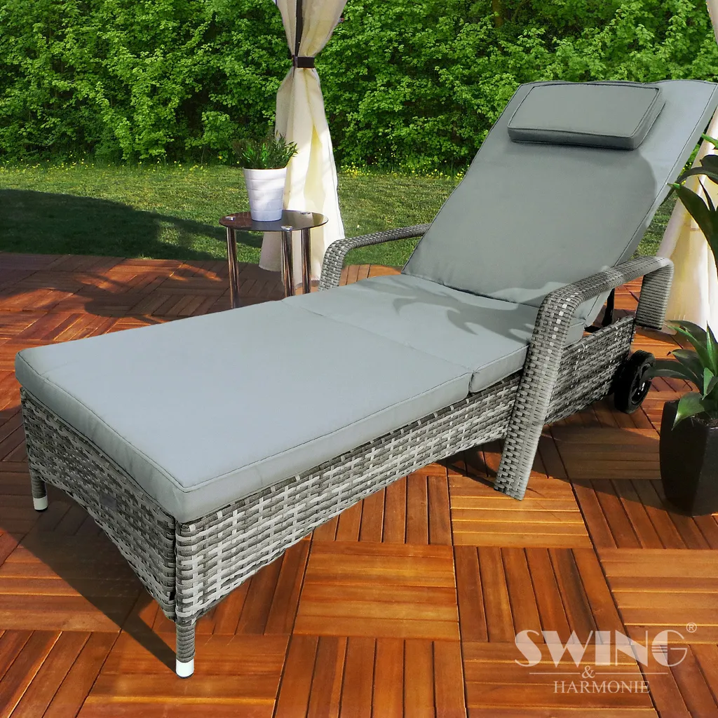 Polyrattan Garten Liege Rattan Sonnenliege Mit Rädern Gartenliege Inkl. Auflagen Und Nackenkissen
