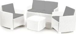 Gartenset „j“ Mit Kissen, 1 Sofa + 2 Sessel (mit Armlehnen) + 1 Outdoor-Container-Tisch, Italy, Weiß
