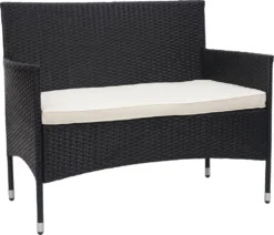 Poly-Rattan Garnitur HWC-F55, Balkon-/Garten-/Lounge-Set Sofa Sitzgruppe Schwarz, Kissen Creme