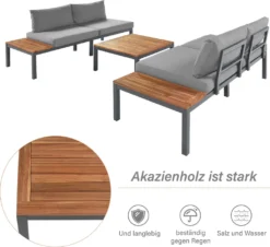 Merax Gartenmöbelset 4-teilig Loungeset Loungegruppe Aus Akazienholz Und Stahlrahmen, Balkonmöbel Set Mit Tisch Und Kissen, 250*172*67cm