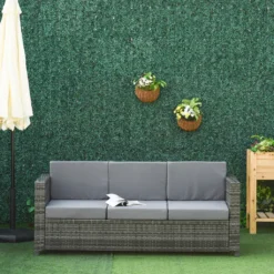 Outsunny Polyrattan Gartenbank Gartensofa Sitzbank Mit Tisch 2-Sitzer Stahl Grau B133 X T63 X H84cm