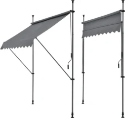 Pro-Tec Klemmmarkise 150x120x200-300cm Markise Balkonmarkise Ohne Bohren Mittelgrau