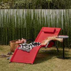 SoBuy OGS38-R Sonnenliege Gartenliege Relaxstuhl Liegestuhl Mit Kopfkissen Rot BHT Ca: 55x67x165cm