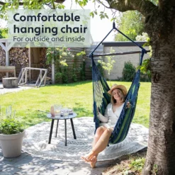 VITA5 Hängesessel Outdoor – Stabiler & Sicherer Hängestuhl – Stylischer Hängesessel Indoor – Schaukel Für Erwachsene & Kinder – Bequeme Boho Raumdeko – 250kg Tragkraft (Grün/Blau)