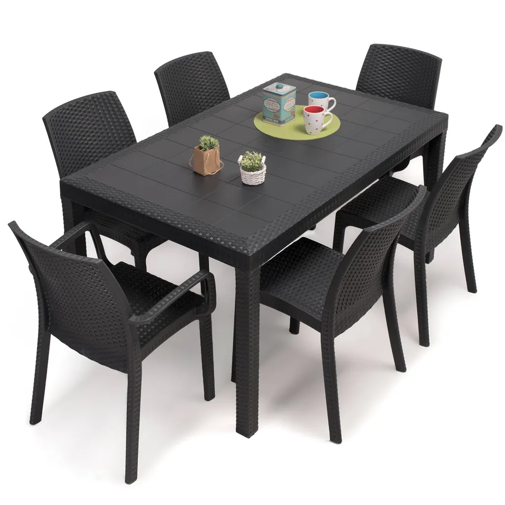 Rechteckiger Außentisch, Hartharzstruktur Mit Rattaneffekt, Italy, 150 X 90 X 72 Cm, Farbe Anthrazit