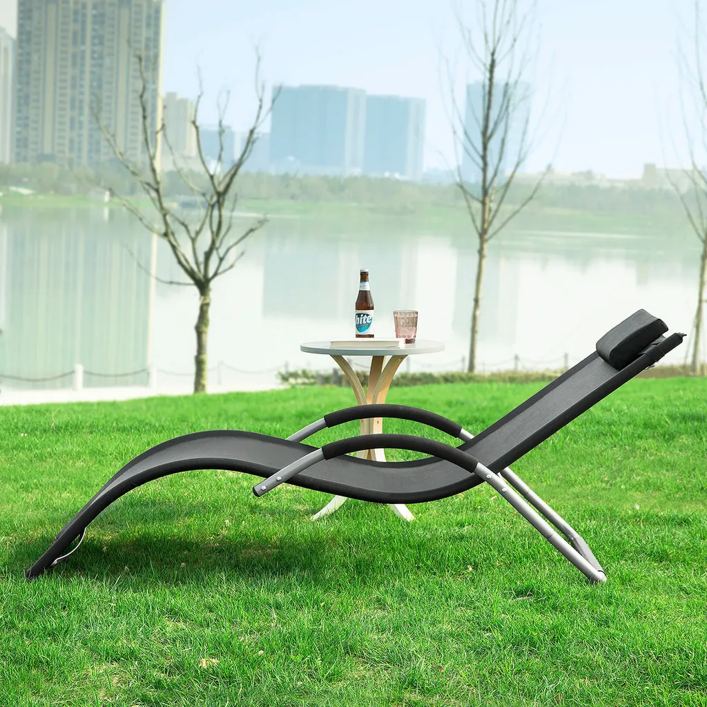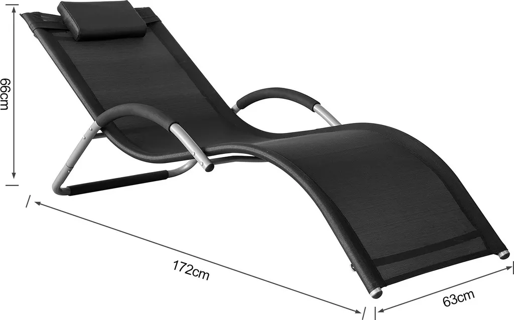 SoBuy OGS38-SCH Sonnenliege Gartenliege Relaxstuhl Liegestuhl Mit Kopfkissen Schwarz BHT Ca: 63x66x172cm