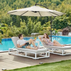 SONGMICS Sonnenliege, Klappbarer Liegestuhl, 193 X 55 X 31 Cm, Max. Belastbarkeit 150 Kg, Mit Sonnenschutz, Verstellbare Rückenlehne, Für Terrasse Pool Garten, Rauchgrau GCB19GYV1